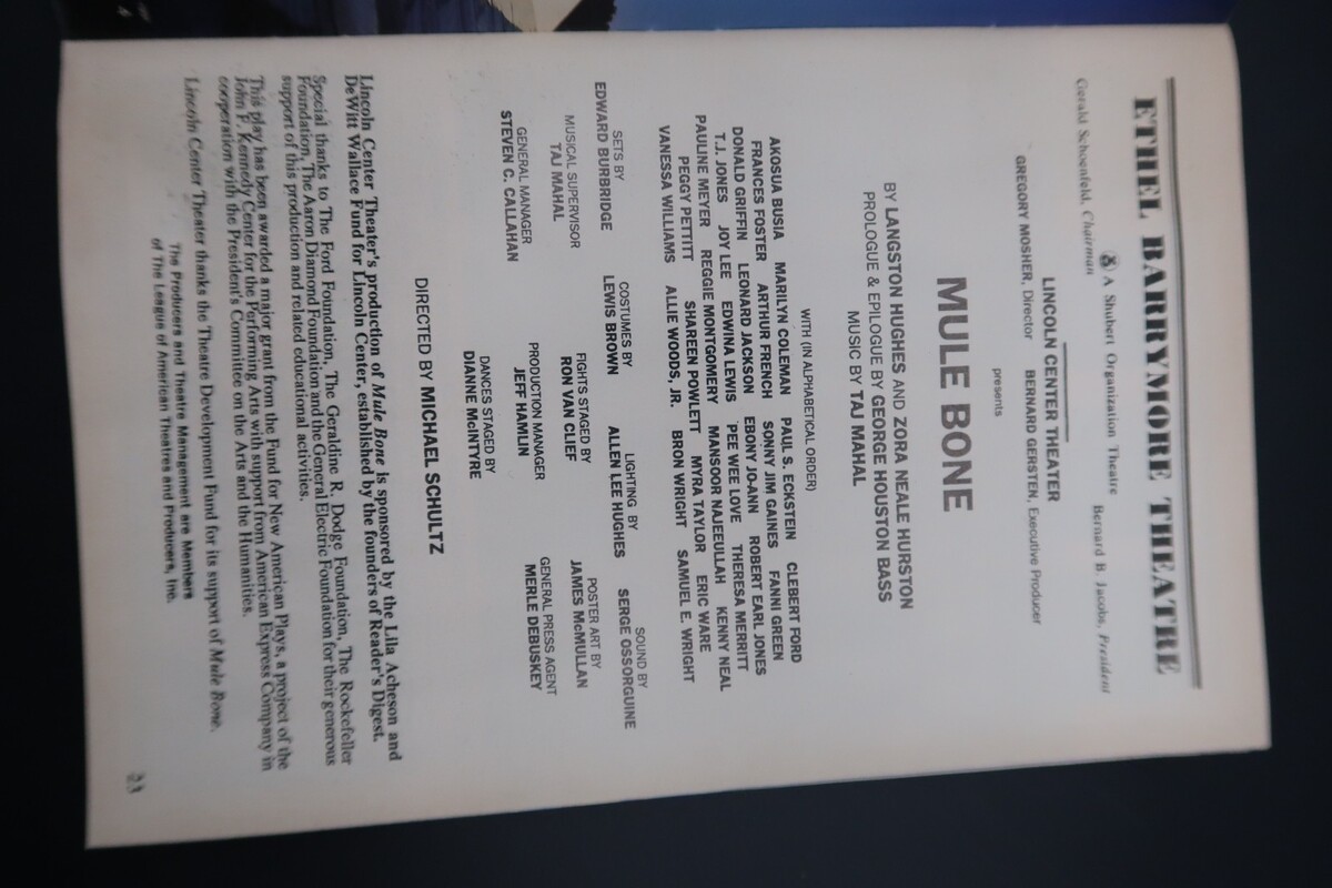 - Vtg Mule Bone Feb. 1991 Ethel Barrymore Theatre Playbill Robert Earl Jones