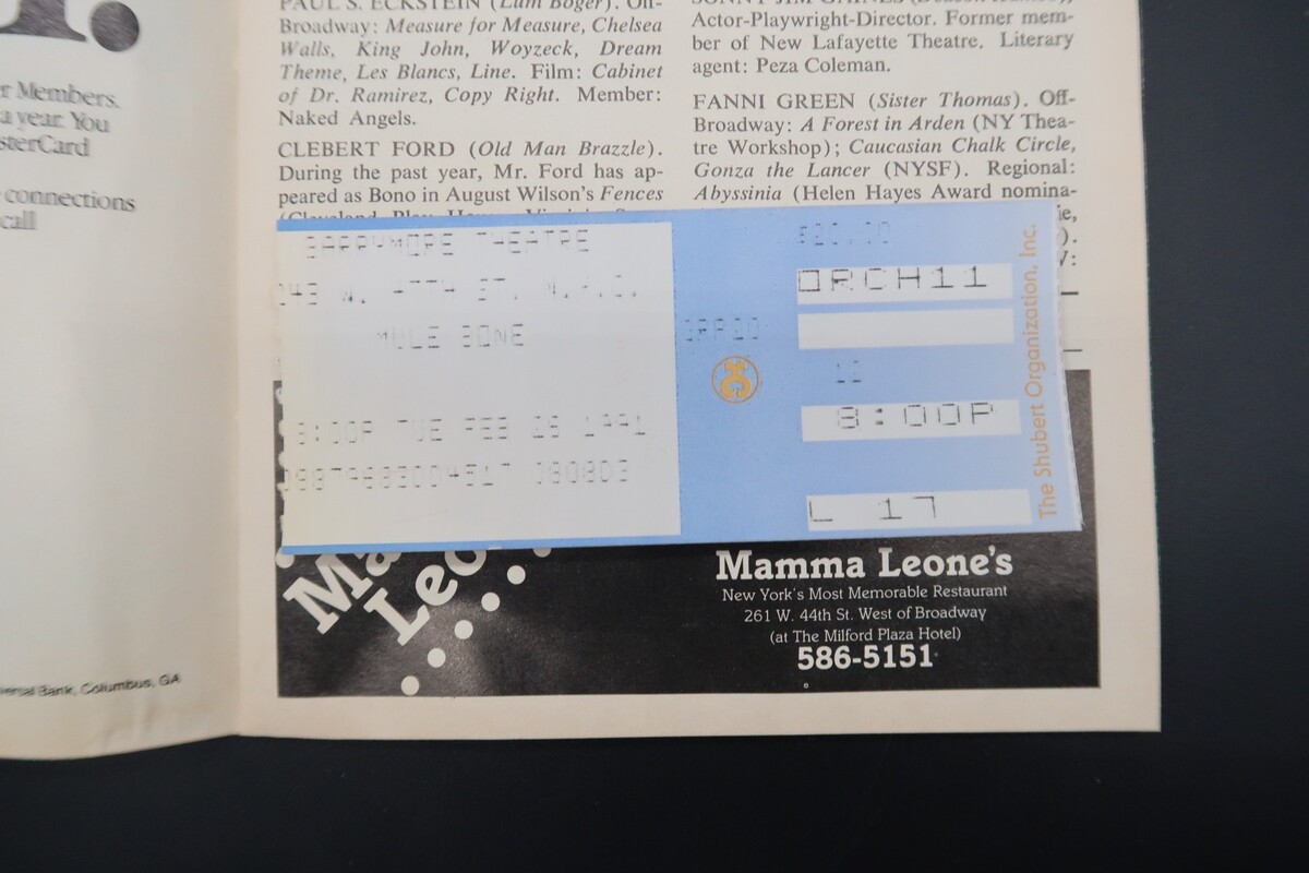Vtg Mule Bone Feb. 1991 Ethel Barrymore Theatre Playbill Robert Earl Jones