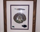This product is a unique hand-painted framed artwork featuring a Native American arrowhead, turquoise stone, and feather, created by the artisan Judeth. The piece is handmade and signed, making it a one-of-a-kind collectible item. Perfect for collectors or anyone looking to add a touch of Native American flair to their home decor.