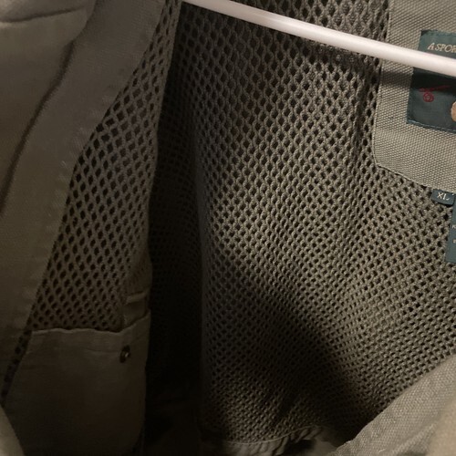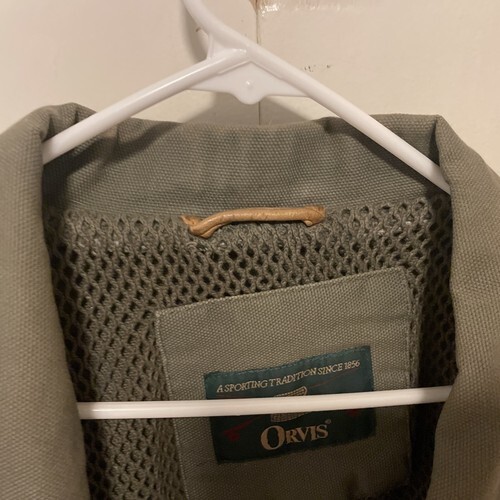 VTG ORVIS Große XL Herren Baumwoll-Twill/Leder Zambezi Safari Jacke Khaki Mantel guter gebrauchter Zustand, siehe Bild Lange 32 Achsel zu Achsel 25,5 Armlange 22