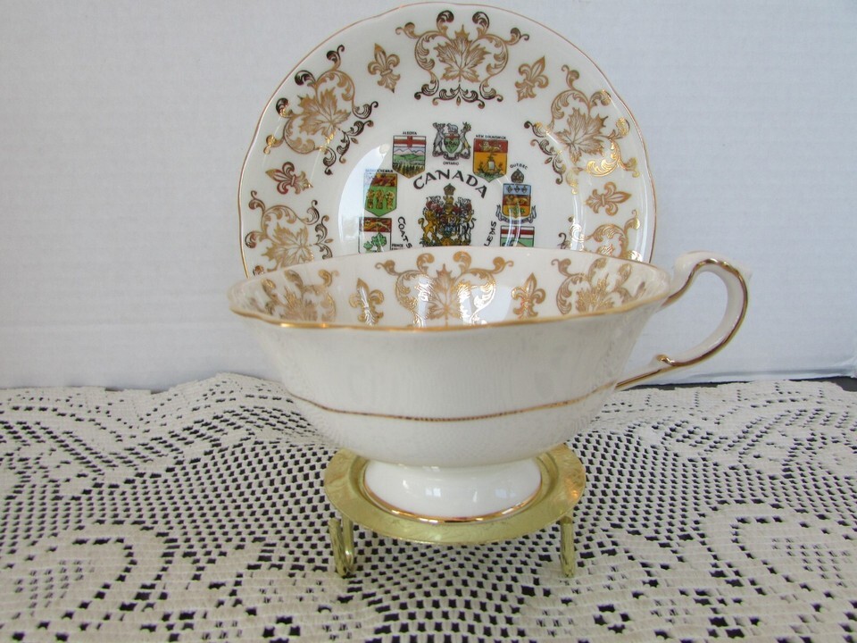 - VTG PARAGON FINE BONE CHINA TEACUP & SAUCER CANADA COATS OF ARMS EMBLEMS GOLD