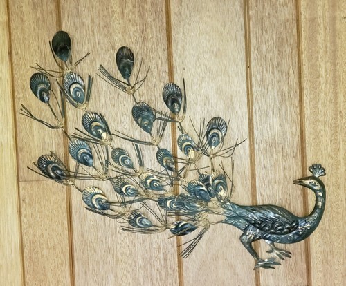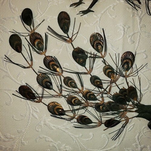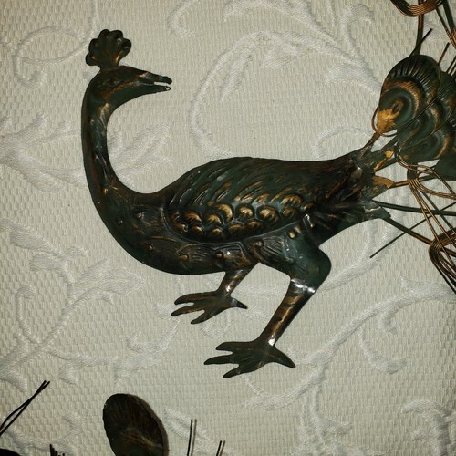- Vtg Peacock Wall Hanging Art Metal Pair Faux Copper Mid Century 1970s Hong Kong