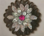 - Vtg Pronged Glass Beads Aurora Borealis Brooch Silver Tone Pinks Floral Burst