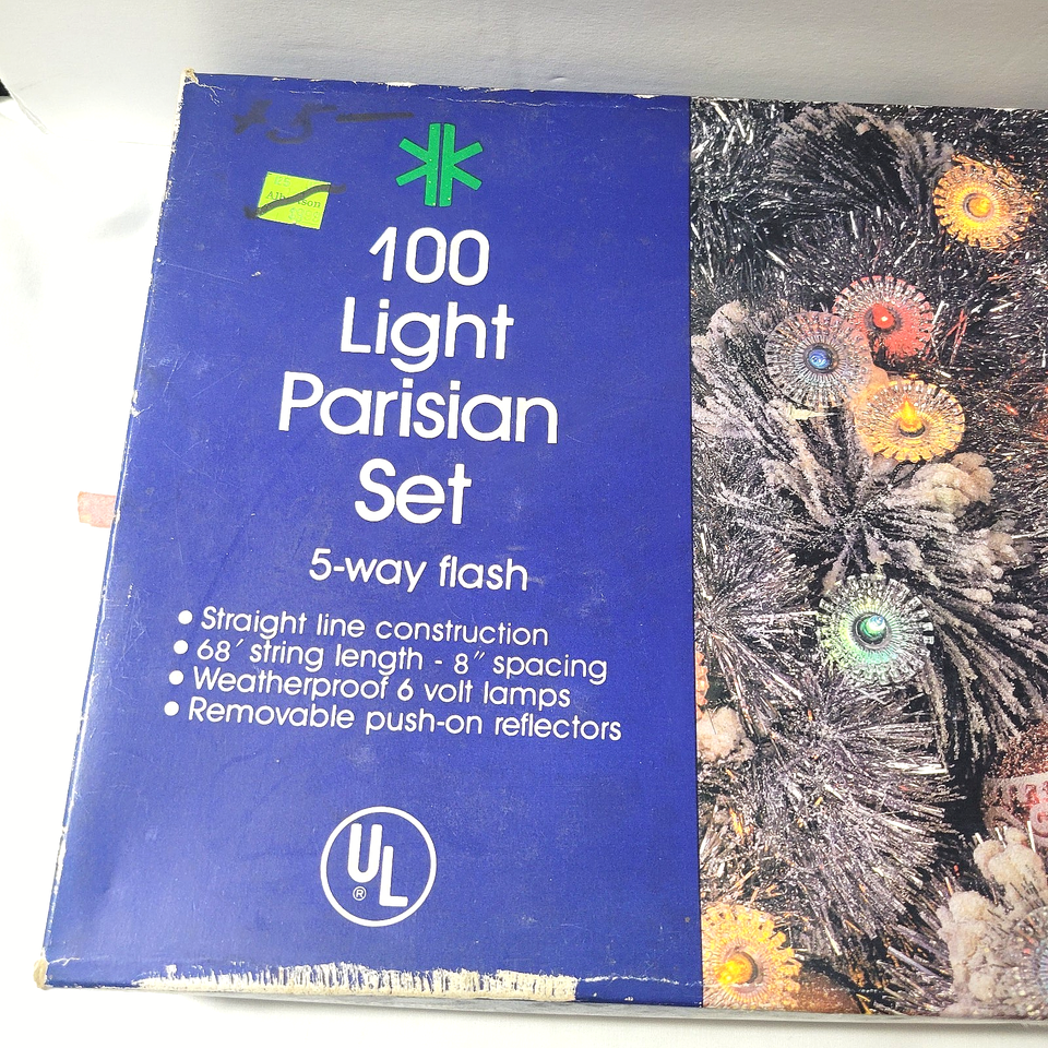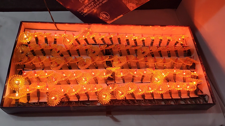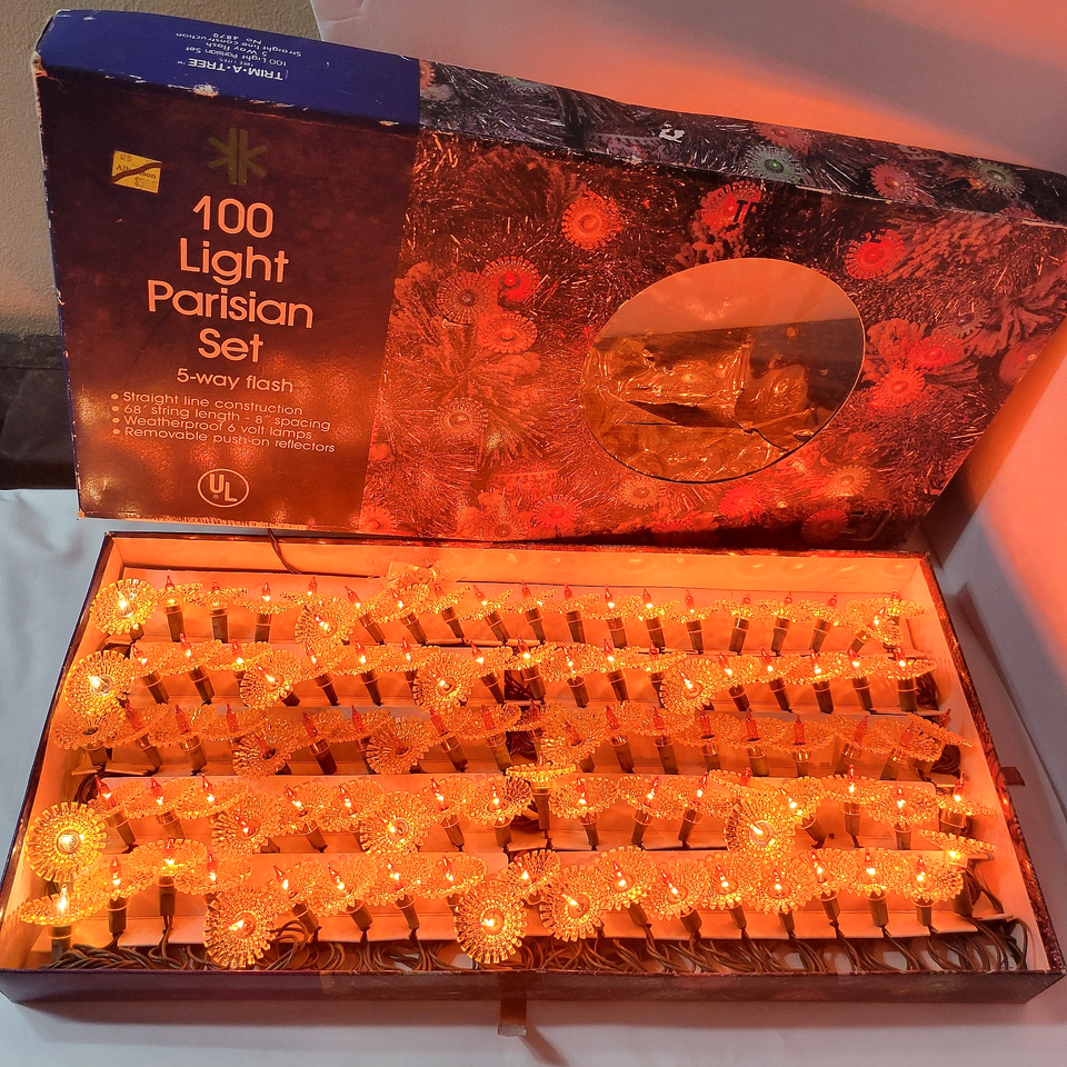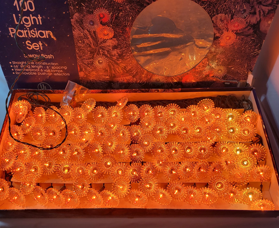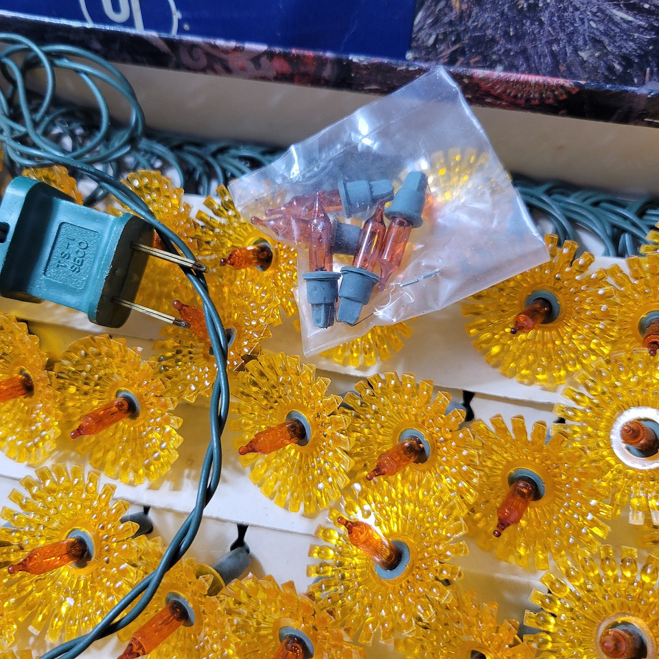 - Vtg Rare 2 Boxes 100 Lights Christmas Gold Sunburst 5 Way Flash Light String Set