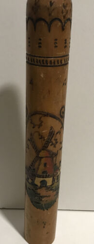 - Vtg Rare Solid Wood Engraved Roller Original Tube Message 20” Long Mill House