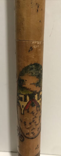 - Vtg Rare Solid Wood Engraved Roller Original Tube Message 20” Long Mill House
