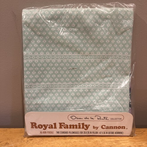 - Vtg Royal Cannon 2 Mist Green Pillowcases Oscar de la Renta Les Belles Fleurs