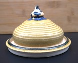 - Vtg Rustic Art Pottery Glazed Stoneware Covered Cheese/Butter Dish Yellow & Blue