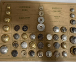 - Vtg Salesman Sample 41 Buttons Card Aluminum & Anodized Silver Gold