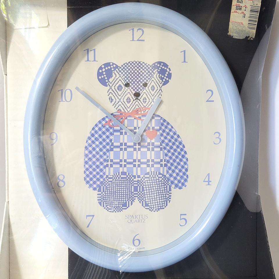 - Vtg Sealed Spartus Waltham Quartz Blue Patchwork Bear Wall Clock Bedroom Kitchen