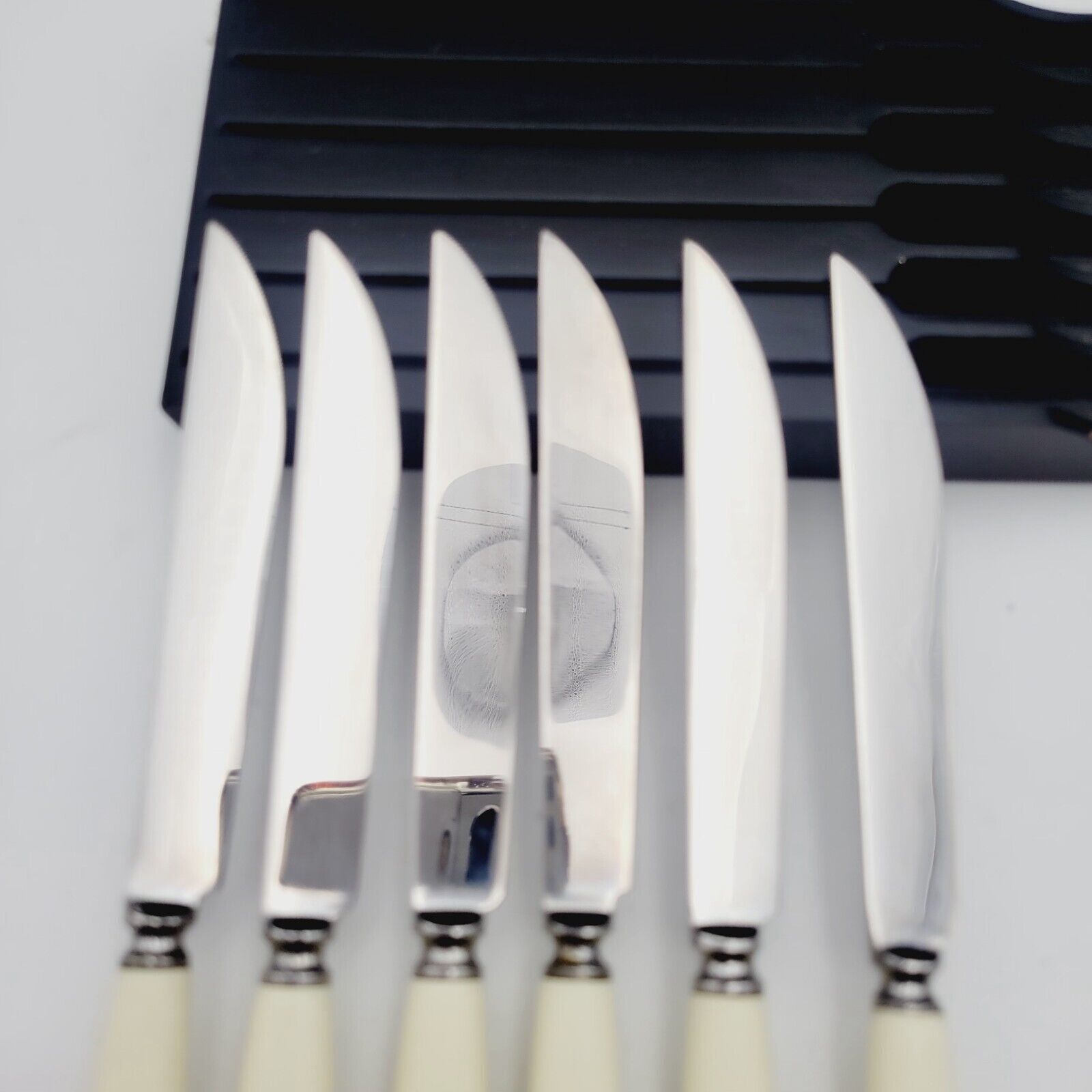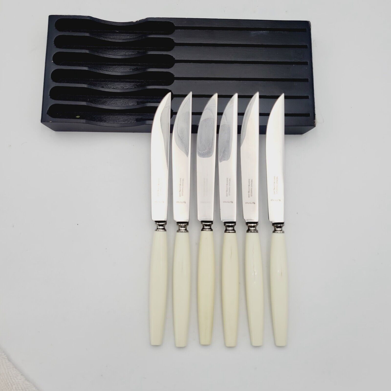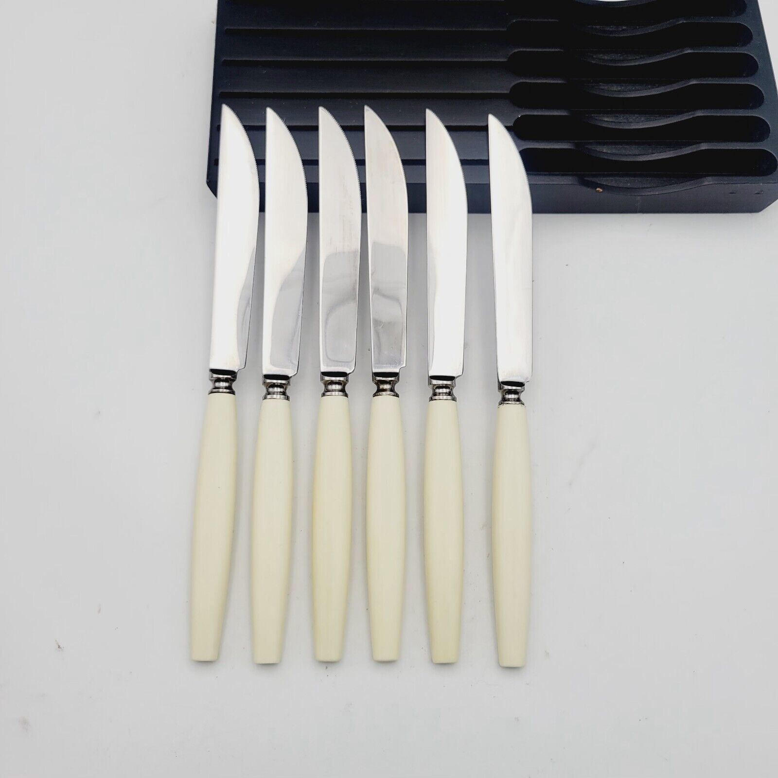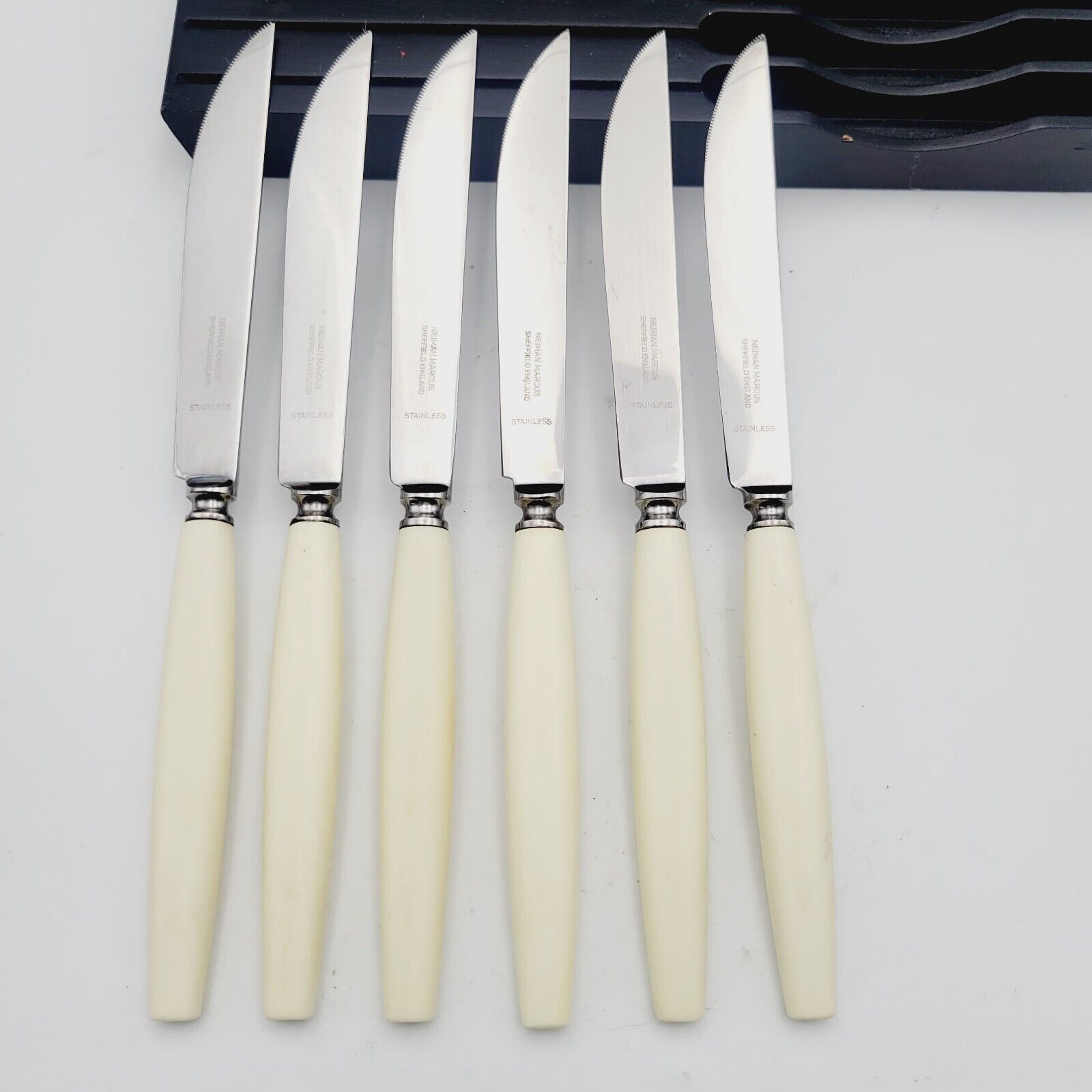 - Vtg Set 6 Neiman Marcus SHEFFIELD Stainless Steak KNIVES Ivorine Handles England