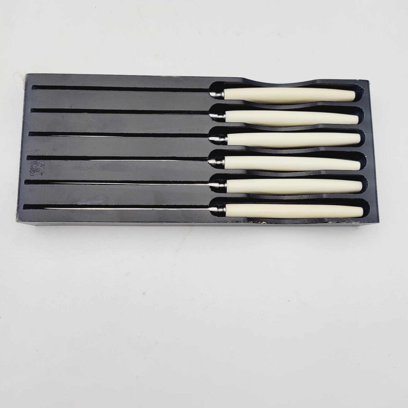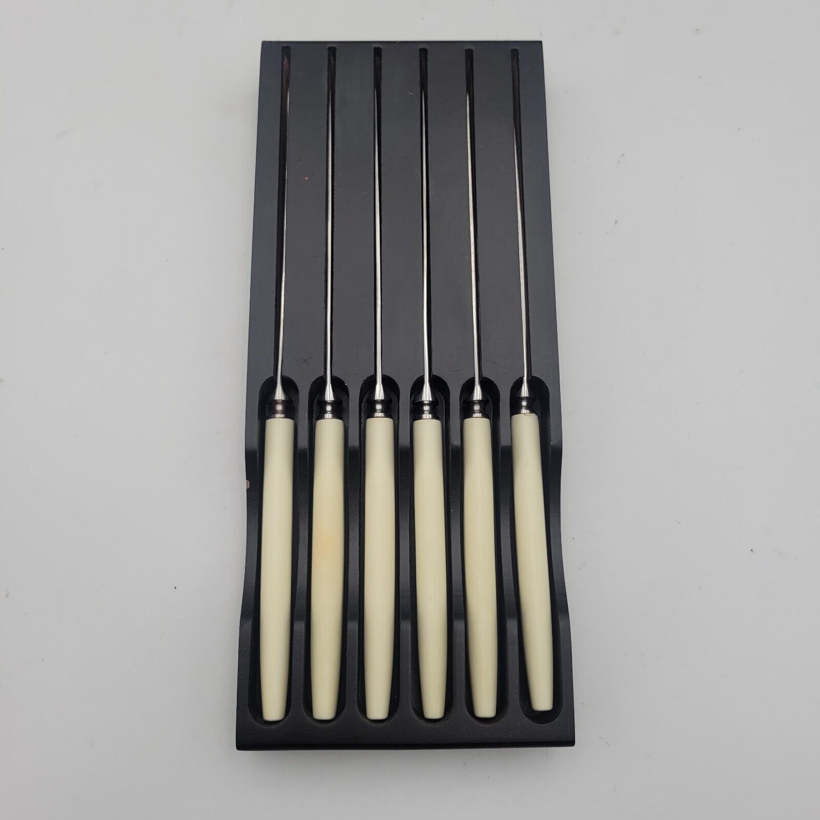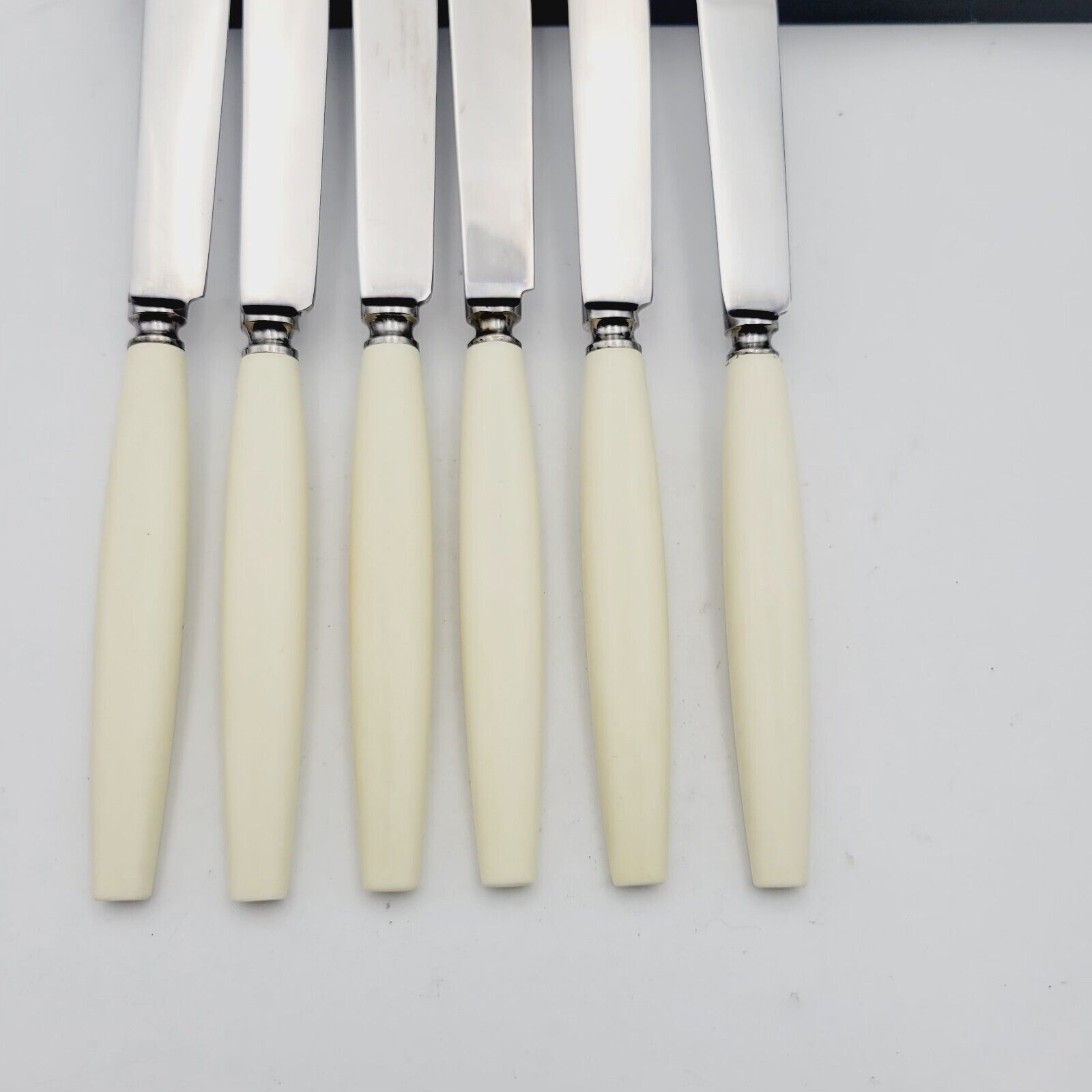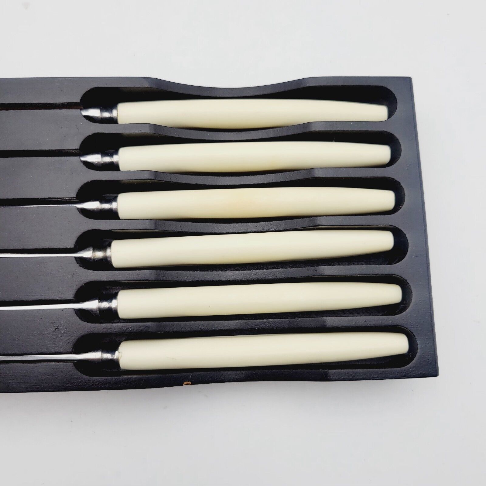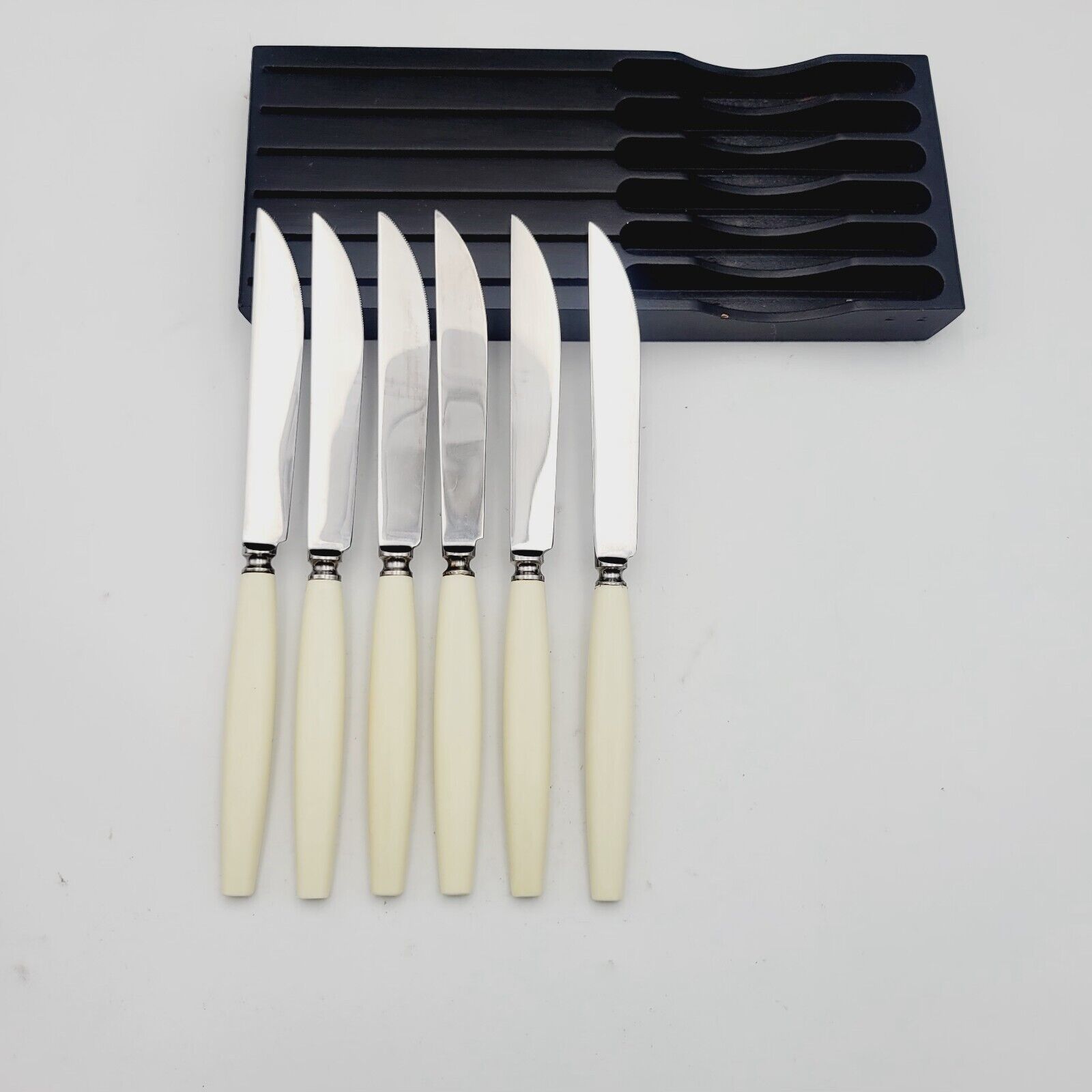 - Vtg Set 6 Neiman Marcus SHEFFIELD Stainless Steak KNIVES Ivorine Handles England
