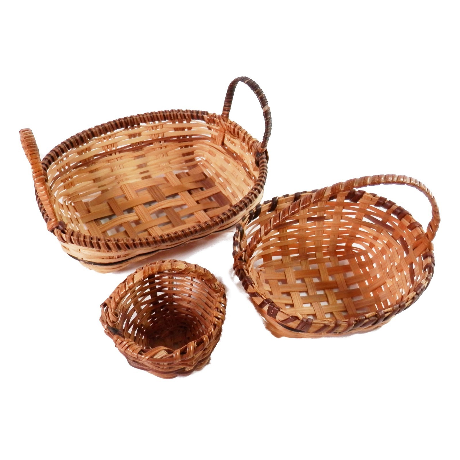 - Vtg Set Nesting Tiny Woven Straw Baskets 2"-5" Wide Miniatures Crafts 18" Doll