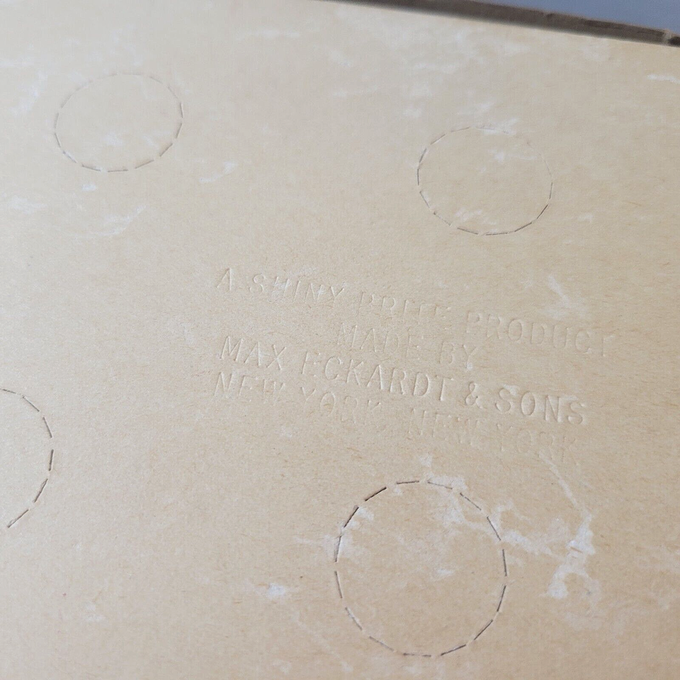 Box bottoms state 'A Shiny Brite Product Made By Max Eckhardt Sons New York New York', bottoms also have punch out holes for display if desired