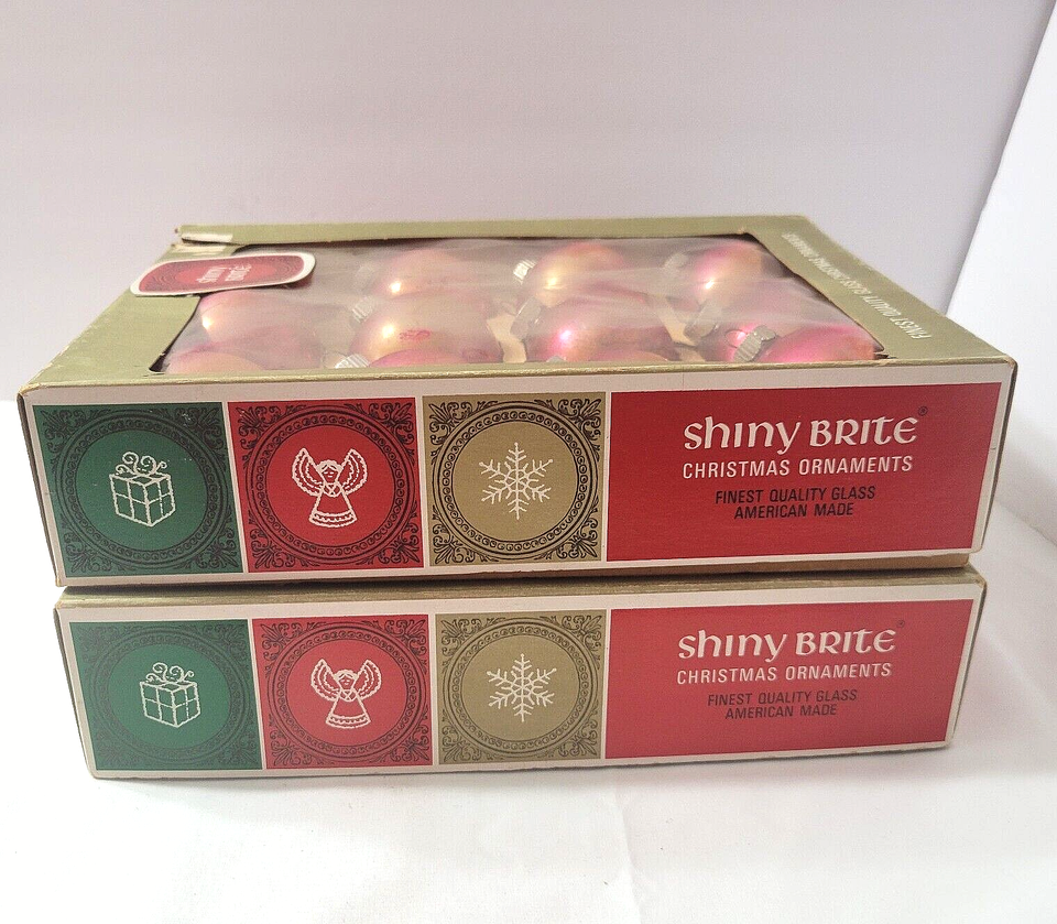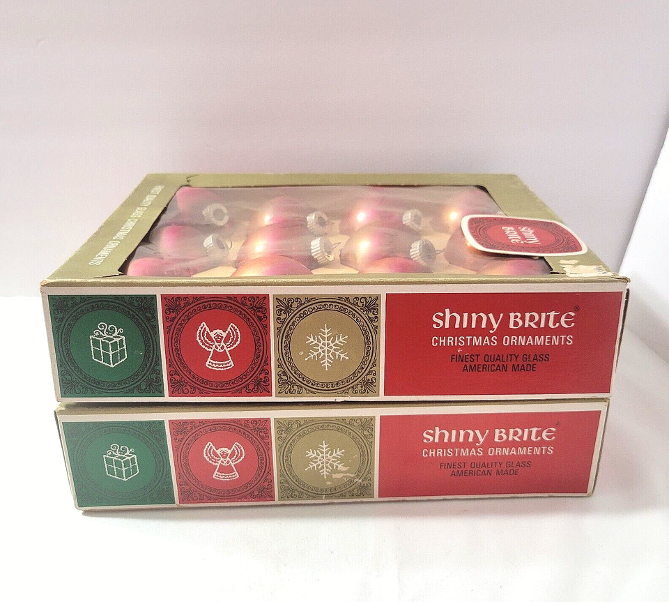 Great matching design, pink/gold ombre, 24 ornaments in original boxes, from Shiny Brite!