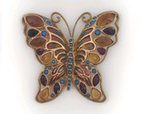 - Vtg Signed Monet Butterfly Brooch Pin Plique A Jour Multicolor Enamel Faceted