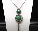 - Vtg Silver Tone Tassle & Sea Green Faceted Cabachon 32" Necklace