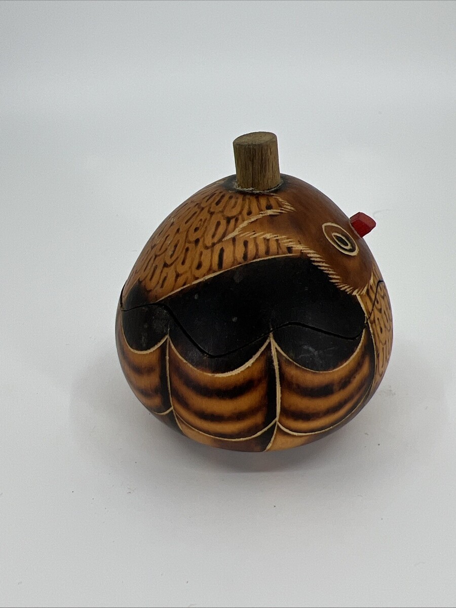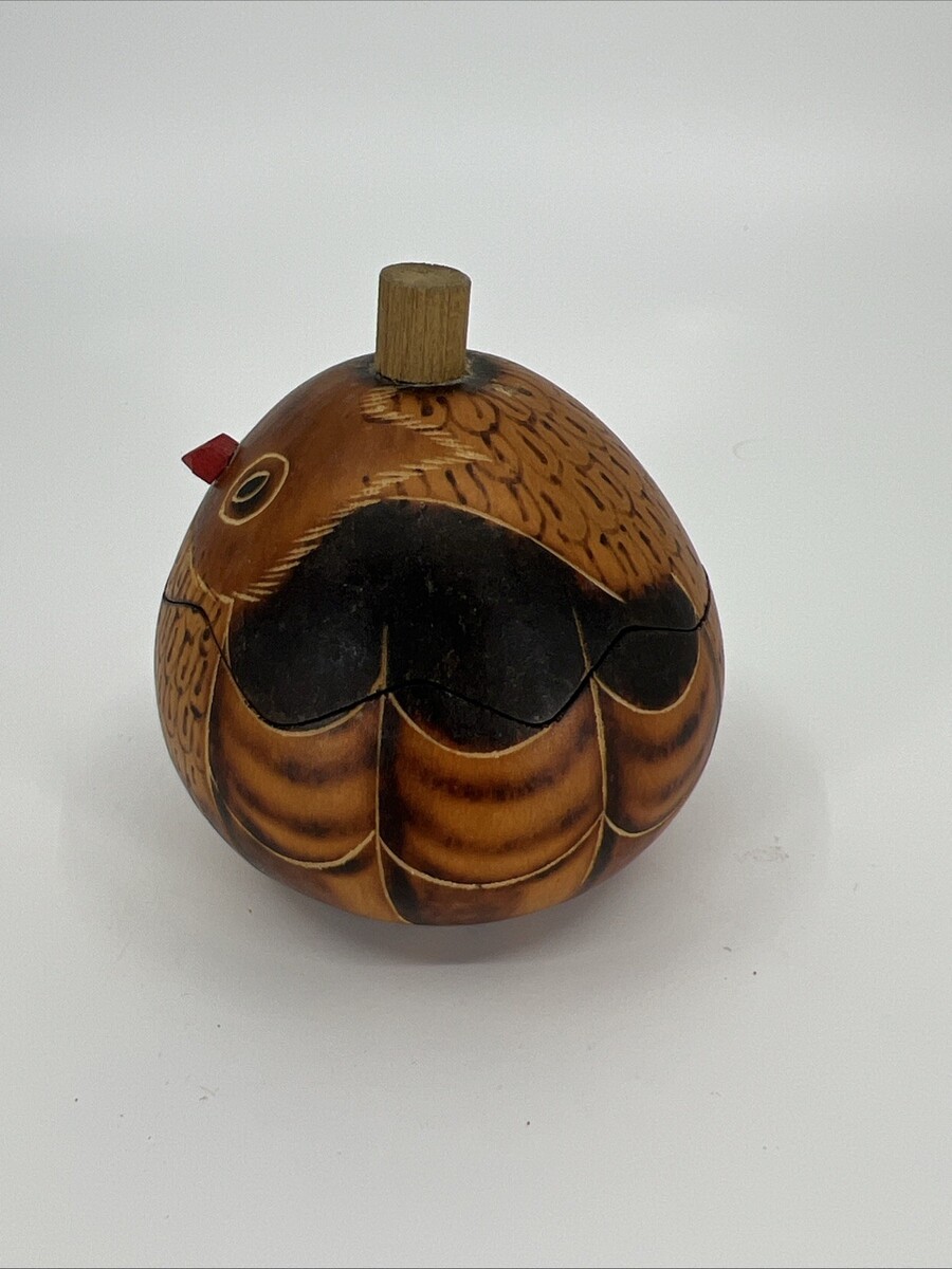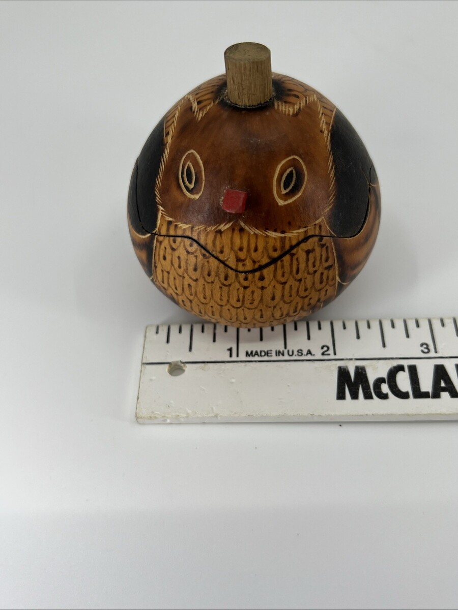 - Vtg Small Hand Carved Ho O’ Pono GOURD Folk Art Owl Jewelry Trinket Box Hawaiian