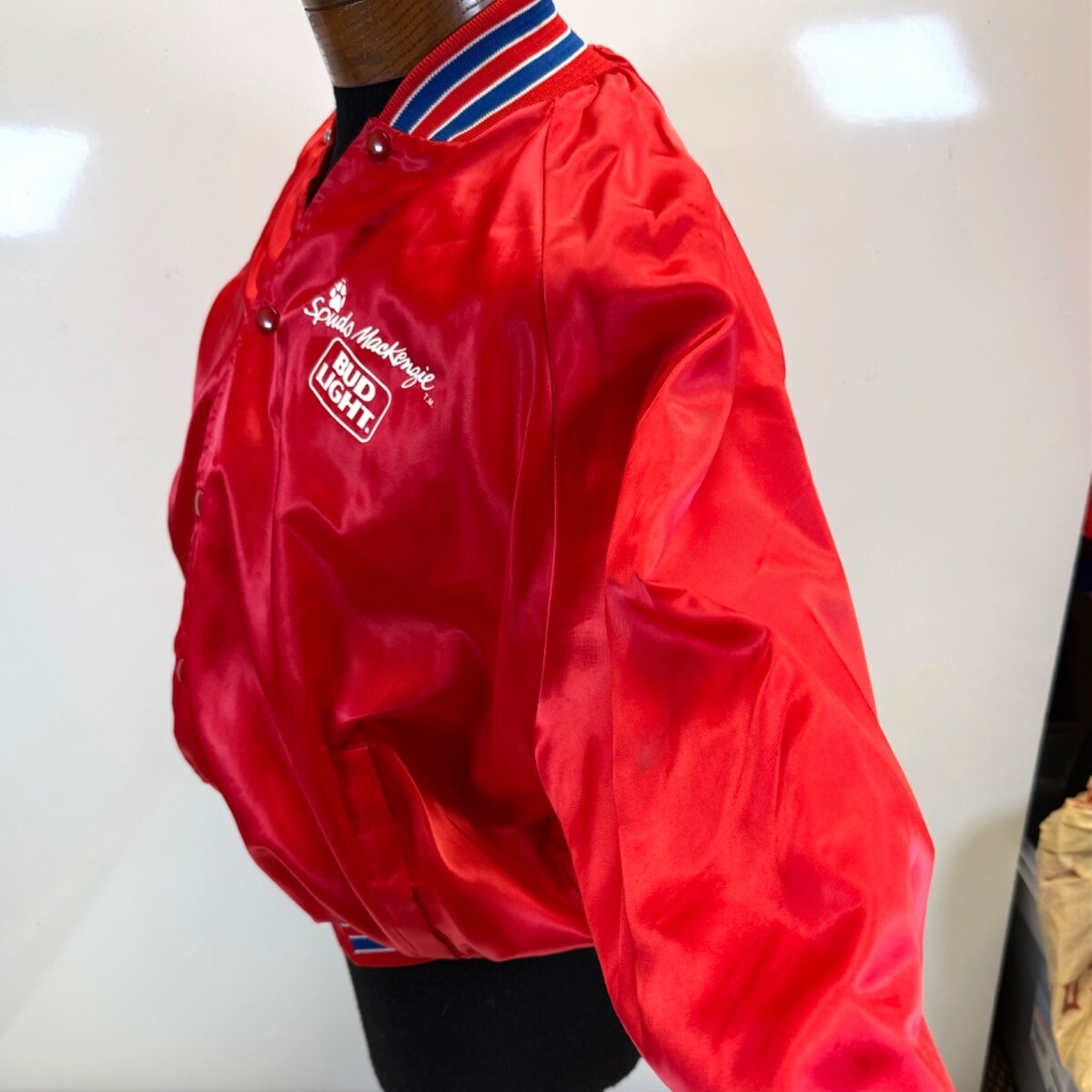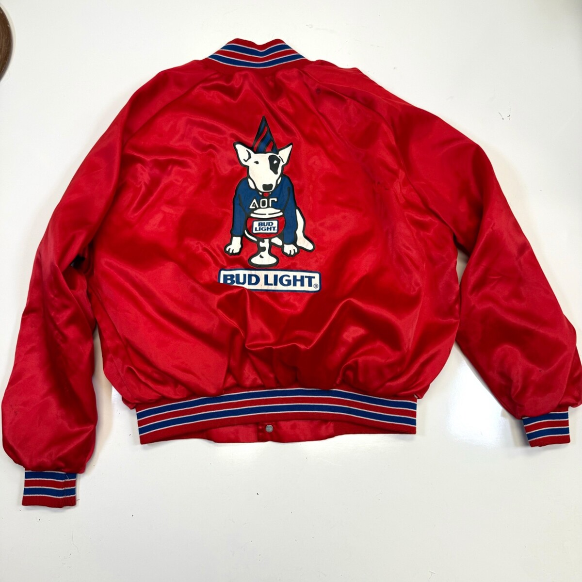 - Vtg Spuds Mackenzie Bud Light Satin Jacket Mens Sz XL Anheuser Busch 80s Promo