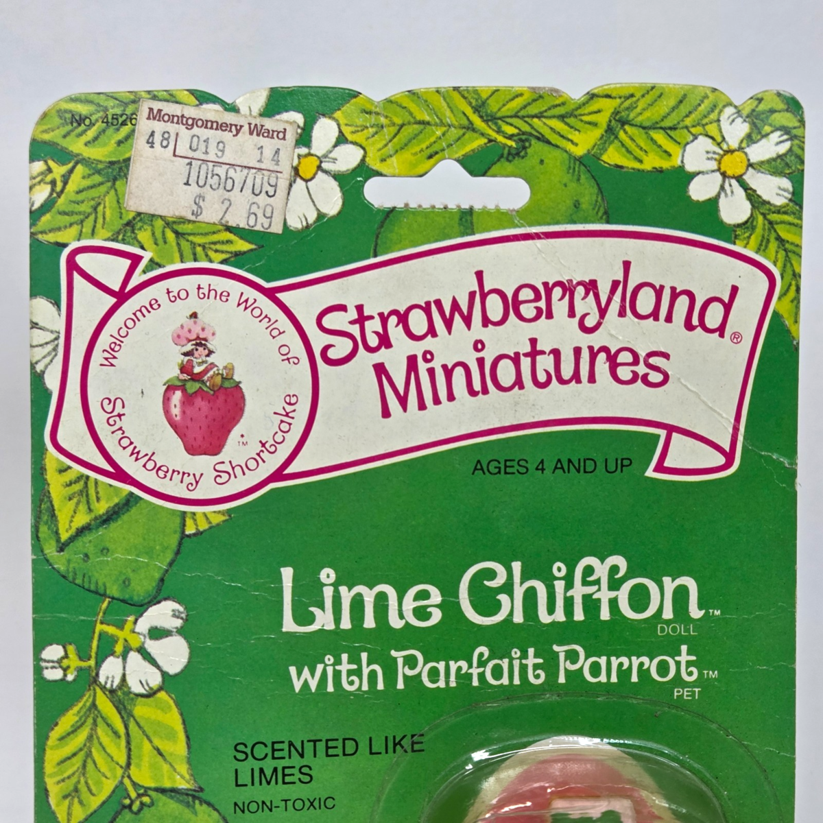 - VTG STRAWBERRYLAND MINIATURES STRAWBERRY SHORTCAKE LIME CHIFFON PARFAIT PARROT
