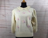 - Vtg Susan Bristol White Crewneck Floral Lambswool & Angora Rabbit Sweater NWT