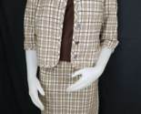 - Vtg Sweater Set Skirt Suit Womens S Brown Check Mod Polyester Rockabilly 60s 70