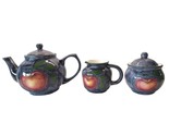 Vintage Tea Set Hand Painted in Thailand ? Teapot Cream Sugar 3 Piece Set. Apple with green leaf stem.