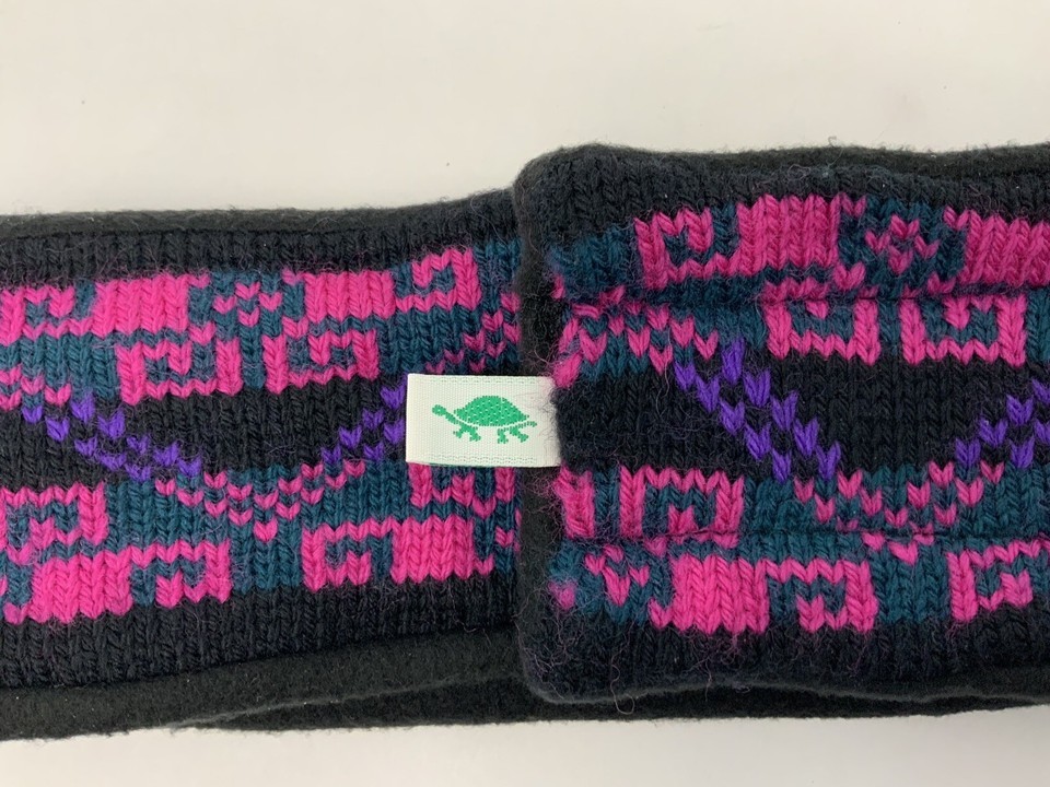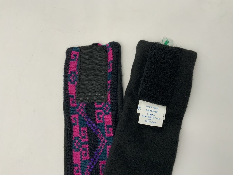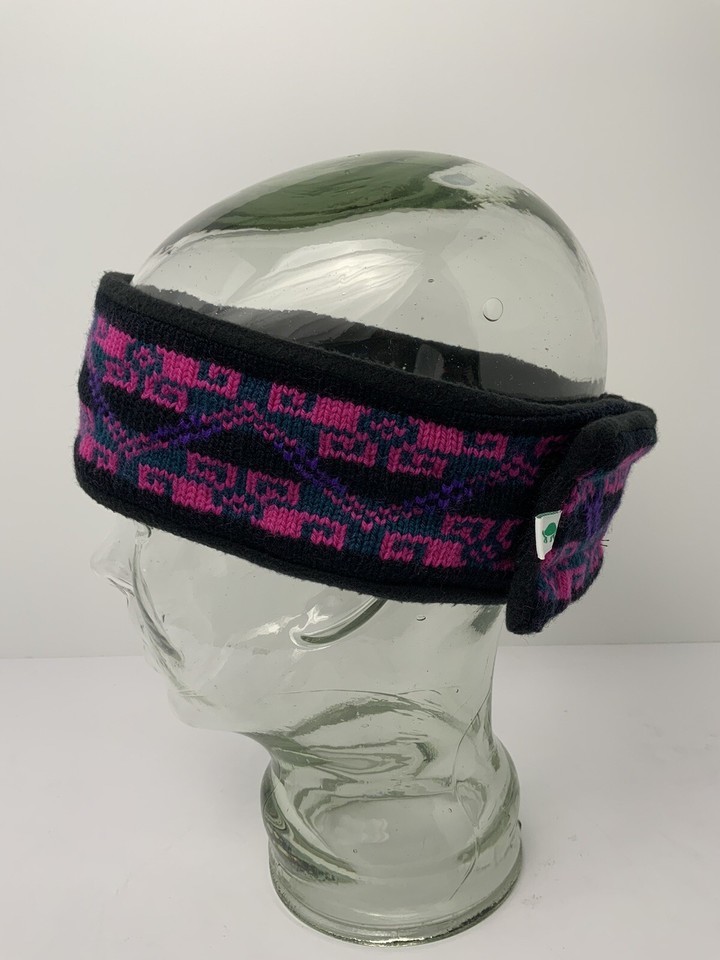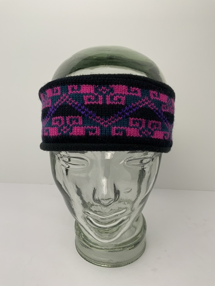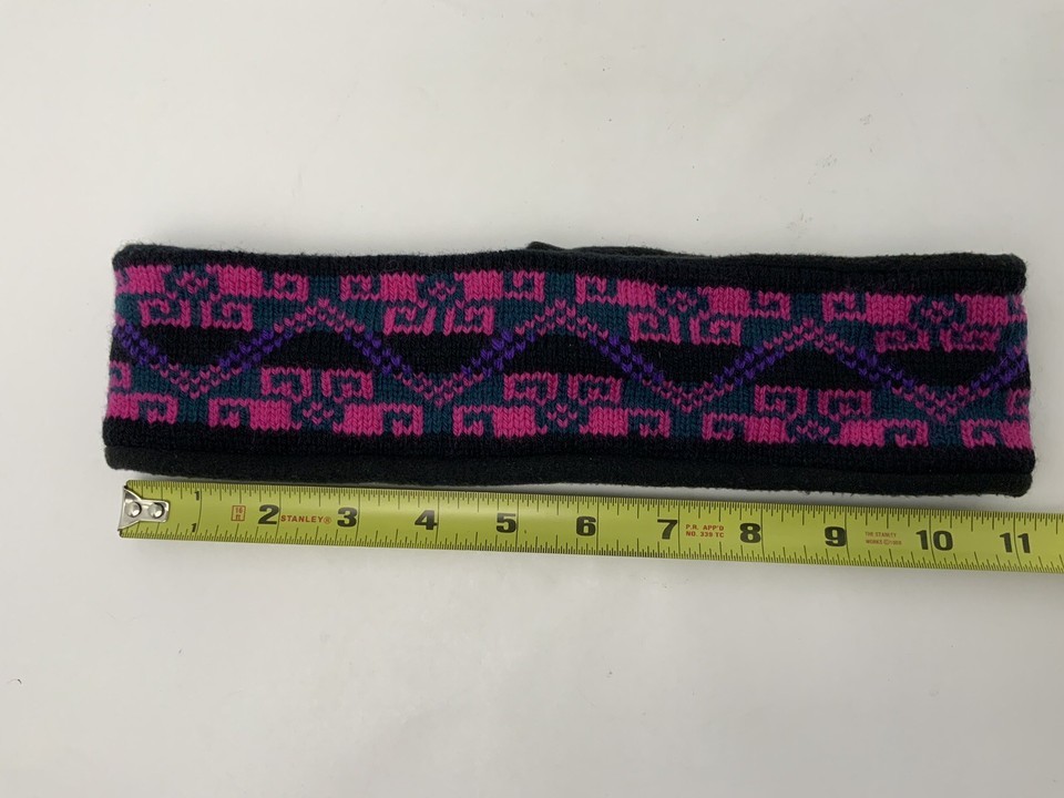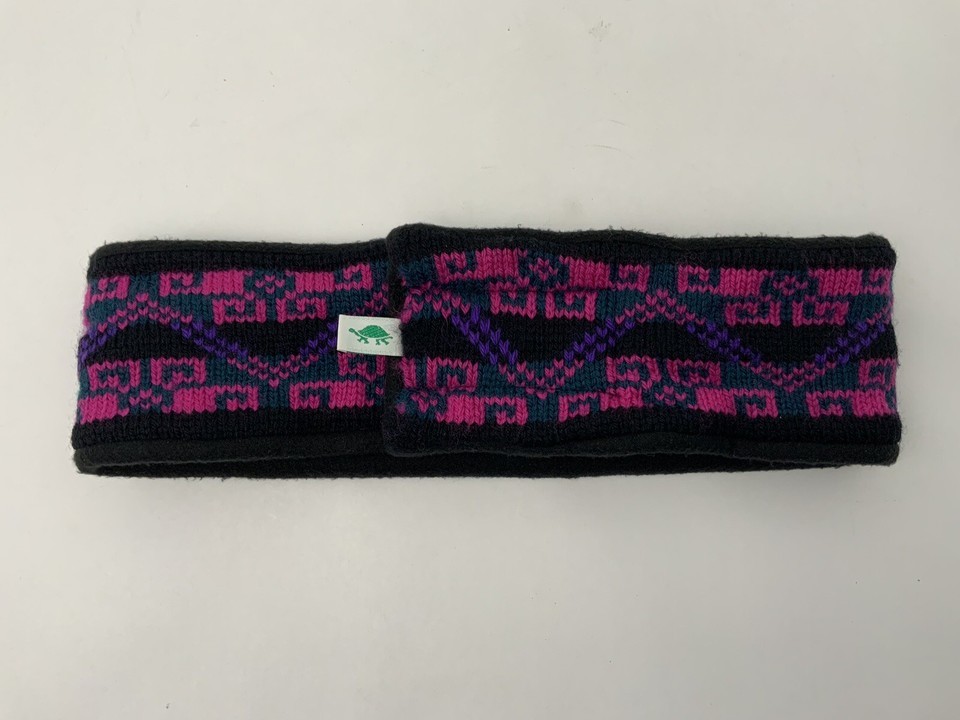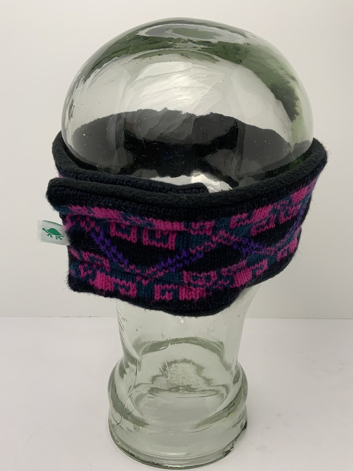 Vintage 80?s Turtle Fur Wide Headband. 100% Wool and Fleece Lining. Black, Neon Pink, Teal, Purple. Retro Ski. Measures approximately 11? at the widest. and 2.75? tall. You can adjust the size of this headband with the hook and loop ends. Poppy Gall.