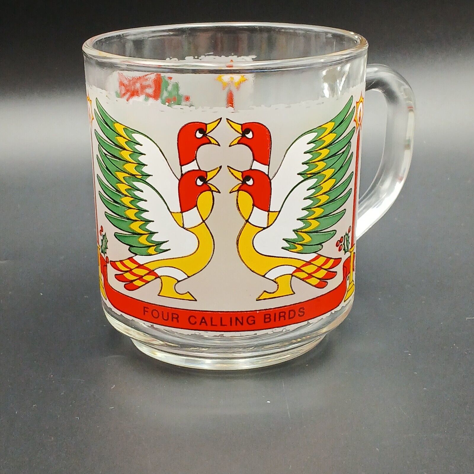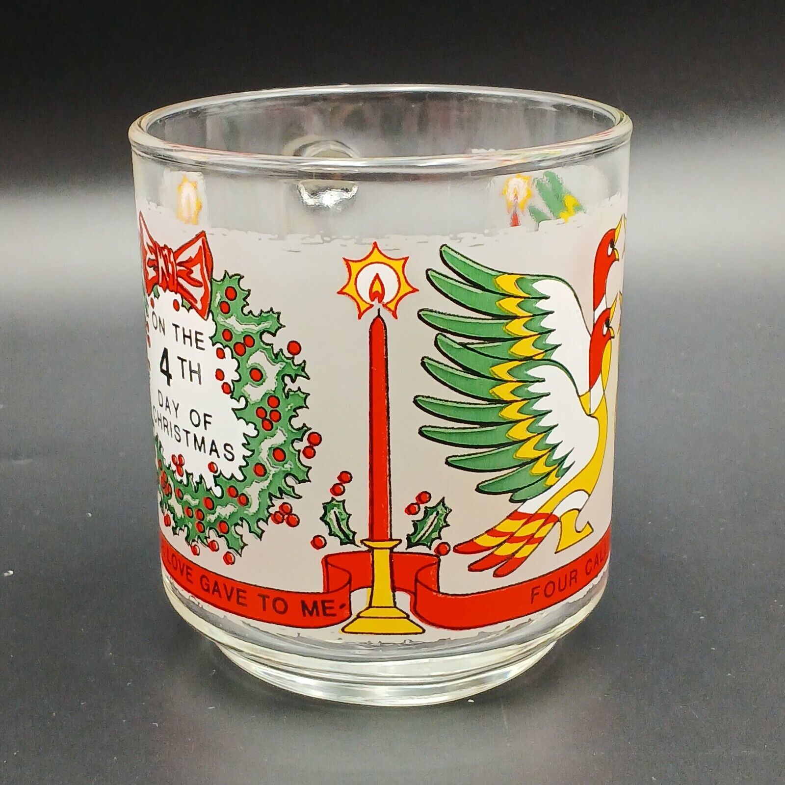 - Vtg Twelve Days of Christmas Glass Mug Tumbler 4th Day Four Calling Bird Luminar