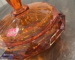 - Vtg Viking Art Glass Diamond Point Covered Candy Dish Persimmon Orange Sticker
