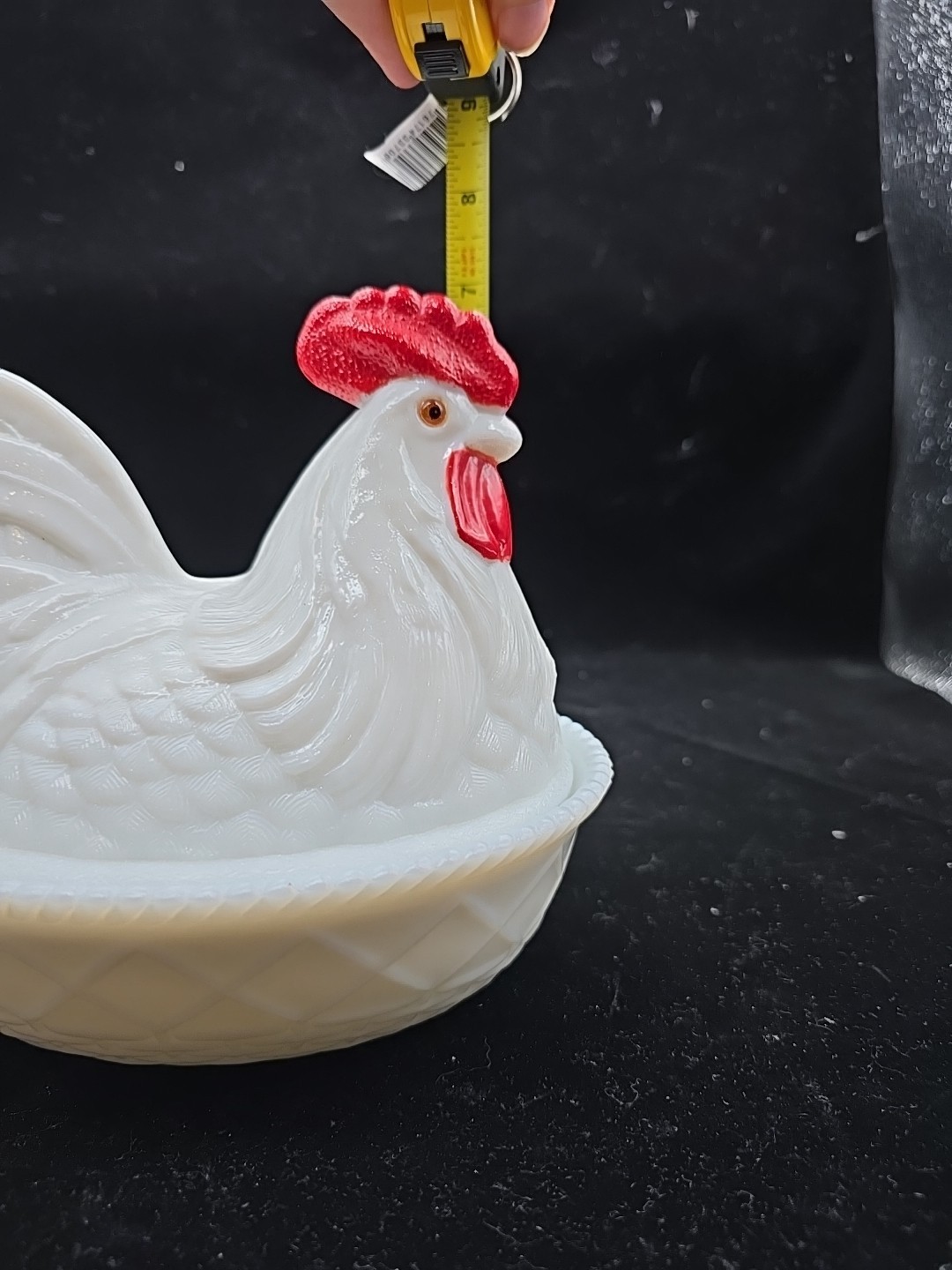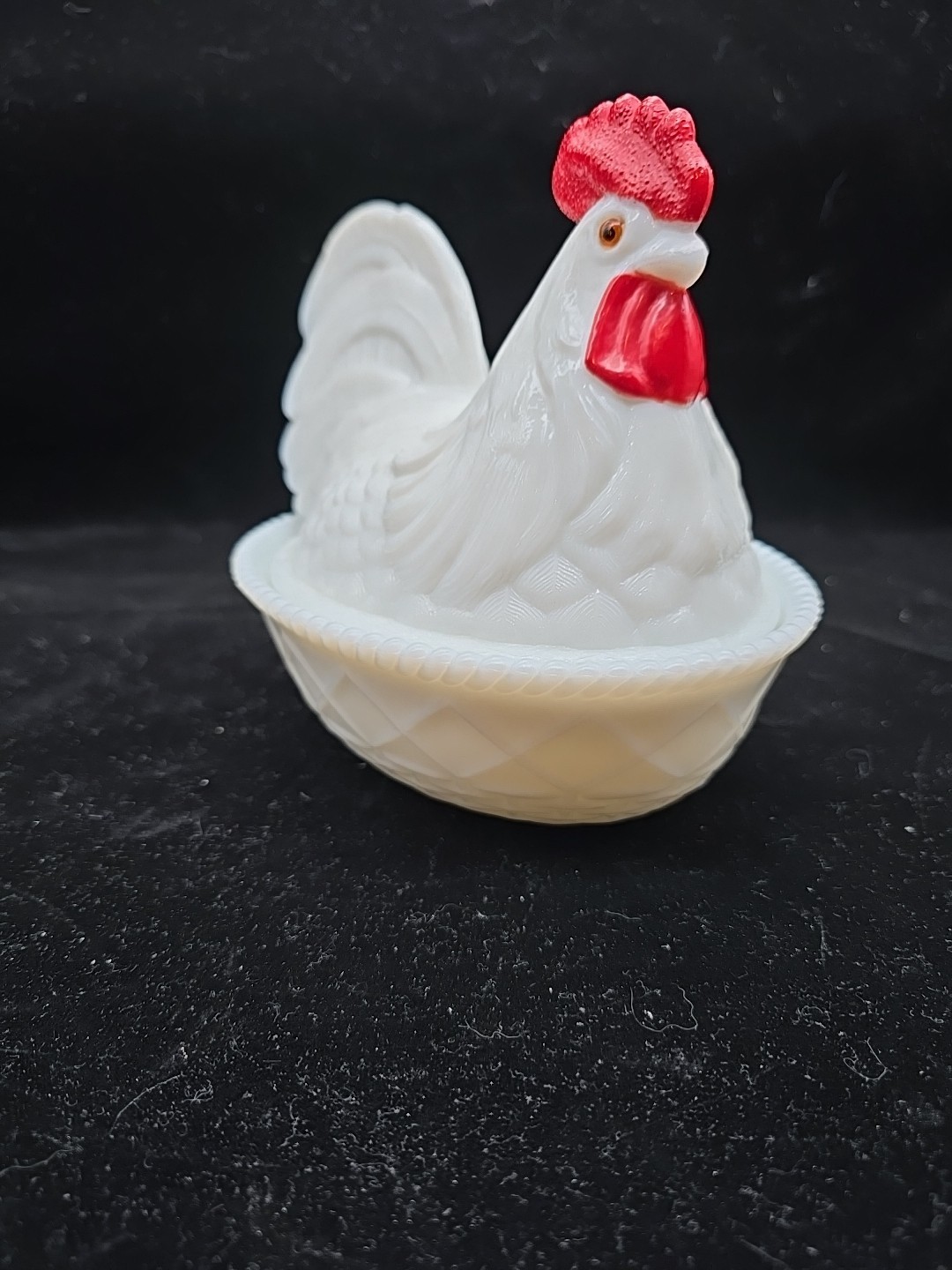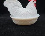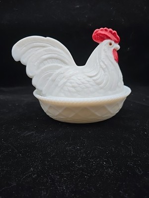 - Vtg Westmoreland Milk Glass Large Chicken Rooster Hen on Nest 7"x 8-1/2" Marked