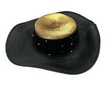 Vtg Whittall & Shon Black Wide-Brim Hat with Gold Sequin Crown & Studded Band