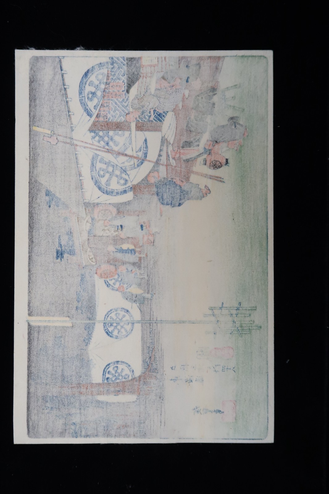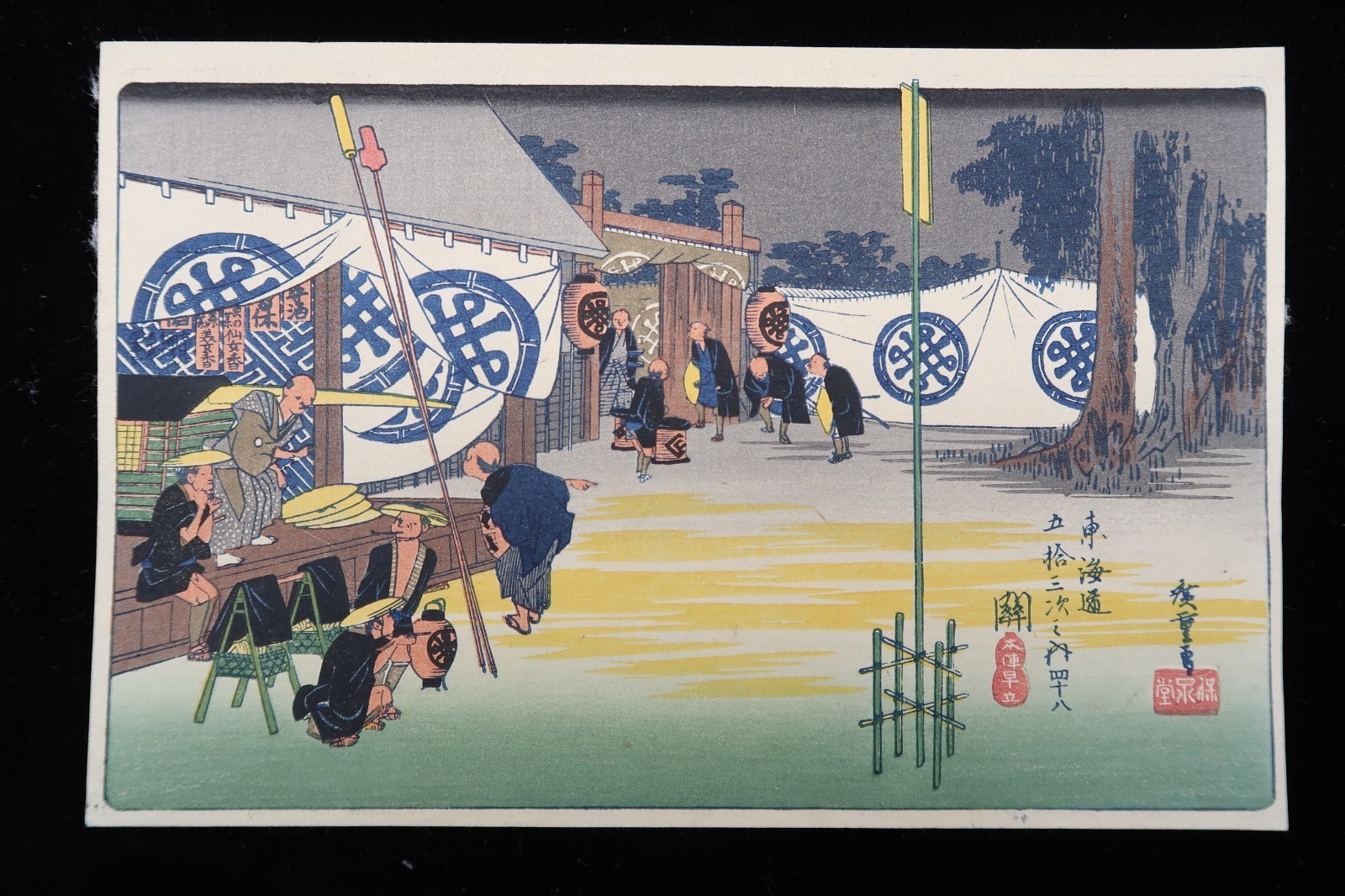 - Vtg Woodblock Print Utagawa Hiroshige 53 Stations Tōkaidō People at City Gate