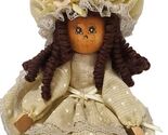 Vintage Wooden Clothespin Doll Prairie Bonnet Yellow Polka Dot Dress Curly Brown Hair 75" tall