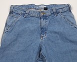 - Vtg Y2K Carhartt Mens 33x30 Faded Spell Out Loose Fit Denim Jeans Blue Cotton