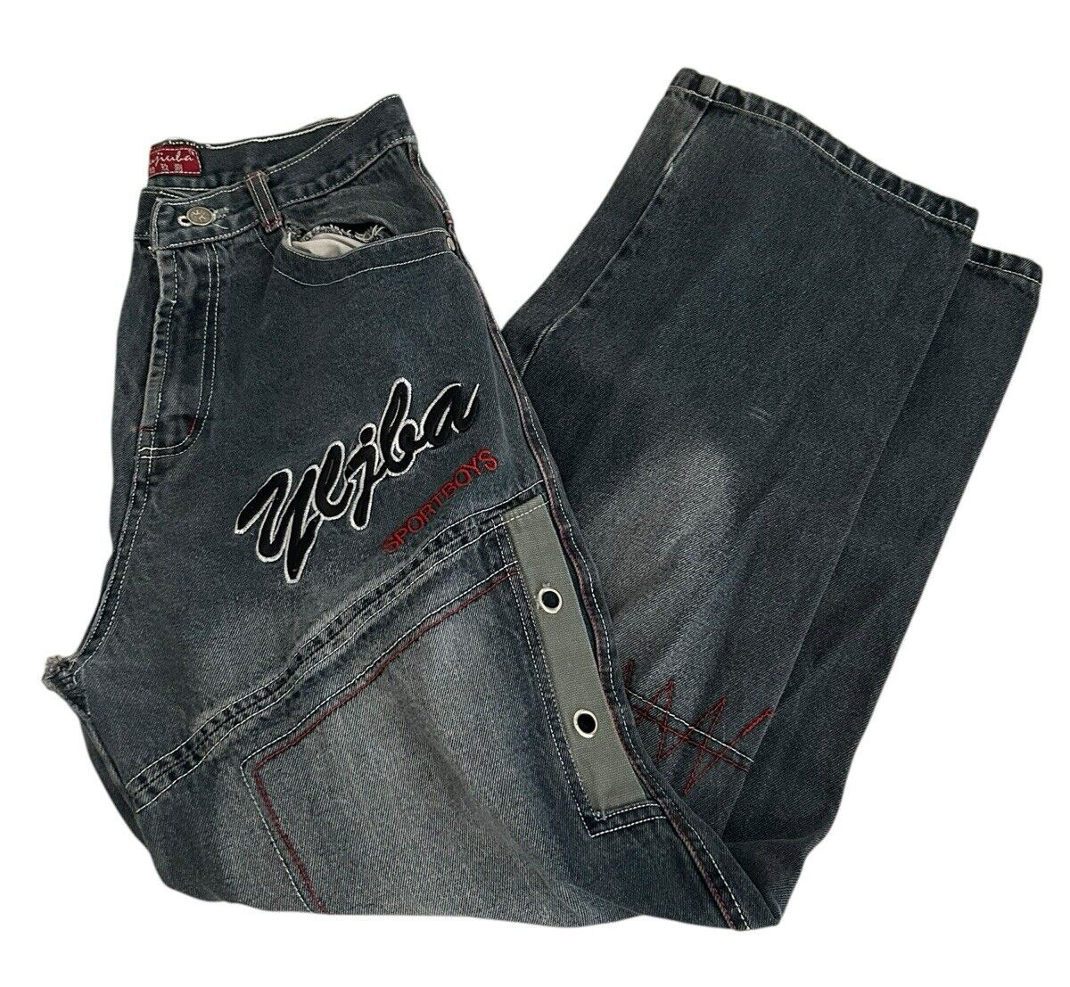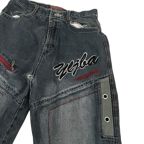 Vtg Y2K SportBoys Denim Embroidered Baggy Jinco Style Jeans 27x30 Faded Black Hip Hop Streetwear RARE