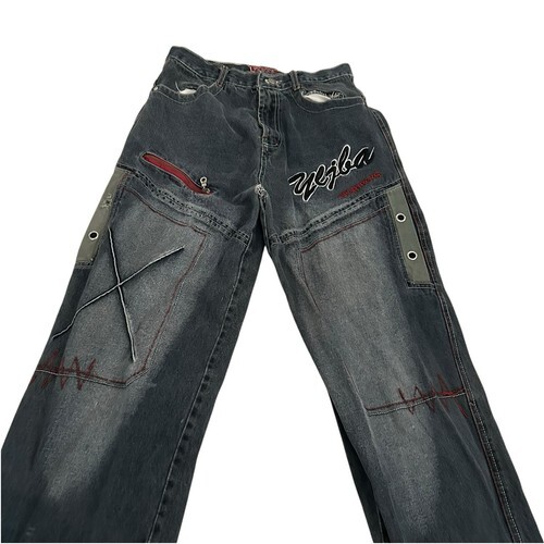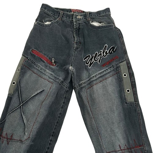 - Vtg Y2K Denim Embroidered Baggy SportBoys Jeans 27x30 Hip Hop Jinc o Style READ