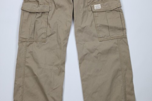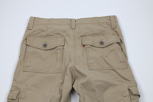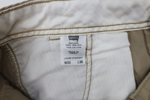 - Vtg Y2K Levis Mens 33x30 Distressed Loose Straight Wide Leg Cargo Pants Beige