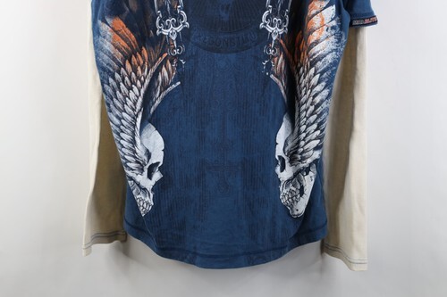 Vtg Y2K MMA Elite Mens 2XL Layered Thermal UFC Skull Cross Long Sleeve T-Shirt