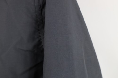 Blemishes collar, left/right arm. Collar, cuffs discolored/pilled. Inner lining discolored. Graphics, color faded