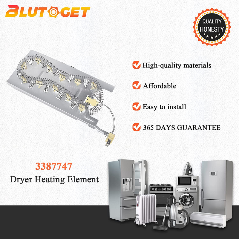 ???365 DAY GUARANTEE?: Blutoget kenmore elite dryer heating element 3387747 is made of strong and solid material, supports 365 day after-sales service. We promise to ensure your absolute satisfaction with every purchase. Risk-free shopping, if you have any problem about AP6008281 dryer heating element , please contact customer service in time. We will try our best to solve the problem. Customer satisfaction is our tireless pursuit
