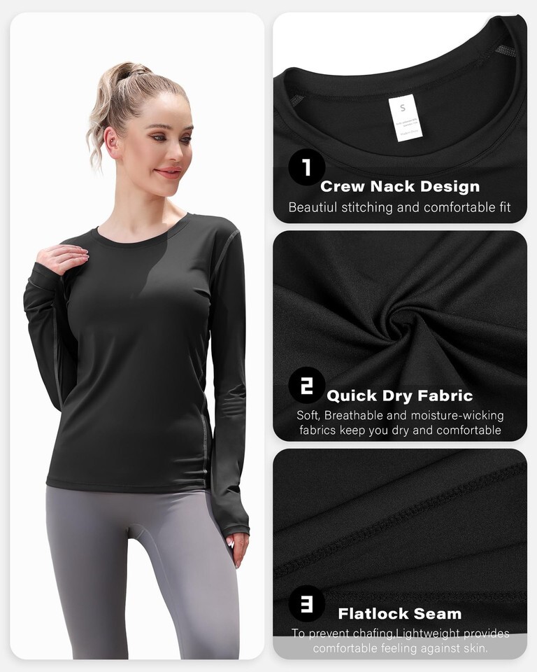 women's long sleeve Workout shirt combine Crew neck, perfect length and Flowy Curved-Hem for both workout and layering under vest, jacket, scrub, uniform tops