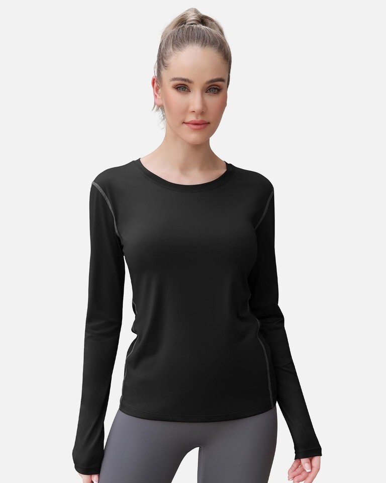 long sleeve undershirt for women-Lightweight 4-way stretch jersey, silk smooth and ultra-soft. Moisture Wicking and quick dry fabric keep you cool and dry in exercises.