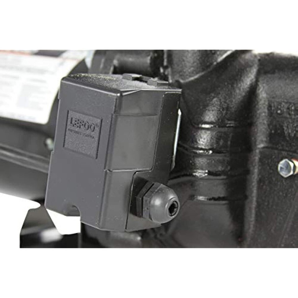 Customizable Settings - Dual voltage (120V/240V) high efficiency square flange motor, with the default factory setting at 120V. Pressure switch is pre-set at 30-50 PSI for automatic operation.