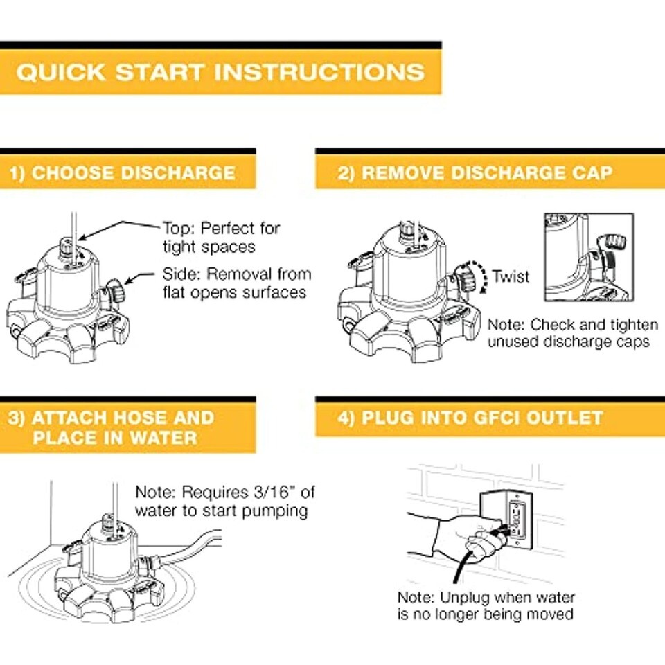 QUALITY YOU DESERVE - Proudly assembled in the USA for quality you can trust. Please note: the pump should be unplugged once the water is gone or pump will run dry.