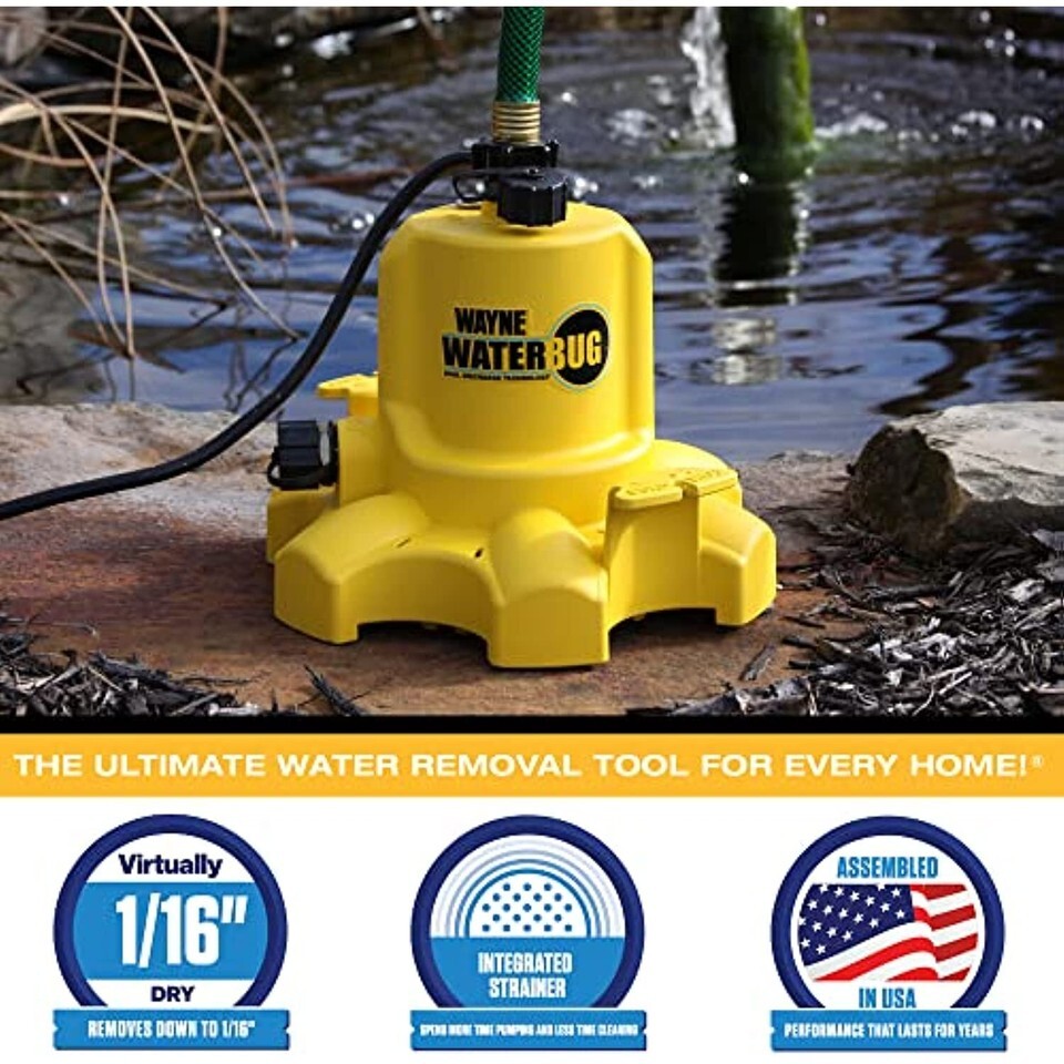 DON?T LET STANDING WATER BUG YOU - The WAYNE WaterBUG is your new ultimate multi-purpose water removal tool. The WWB model is easy to use in tight spaces like window wells, or big spaces like basements thanks to patented Multi-Flo Technology.