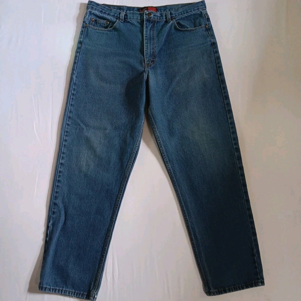 Upgrade your casual wardrobe with these medium wash WC jeans Perfect Denim. These jeans feature a straight leg design with a 5-pocket design and belt loops. The zipper fly and easy care fabric make them perfect for everyday wear. They are made of 100% cotton and have a high rise waist. These jeans come in size 38x32 and are suitable for adults. Add these jeans to your casual workwear collection today! Normal wear, See Pictures.