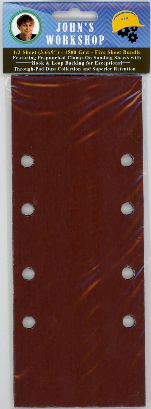 - WEN 6313 - 1/3 Sheet - 1500 Grit - No-Slip - 5 Sandpaper Bundle