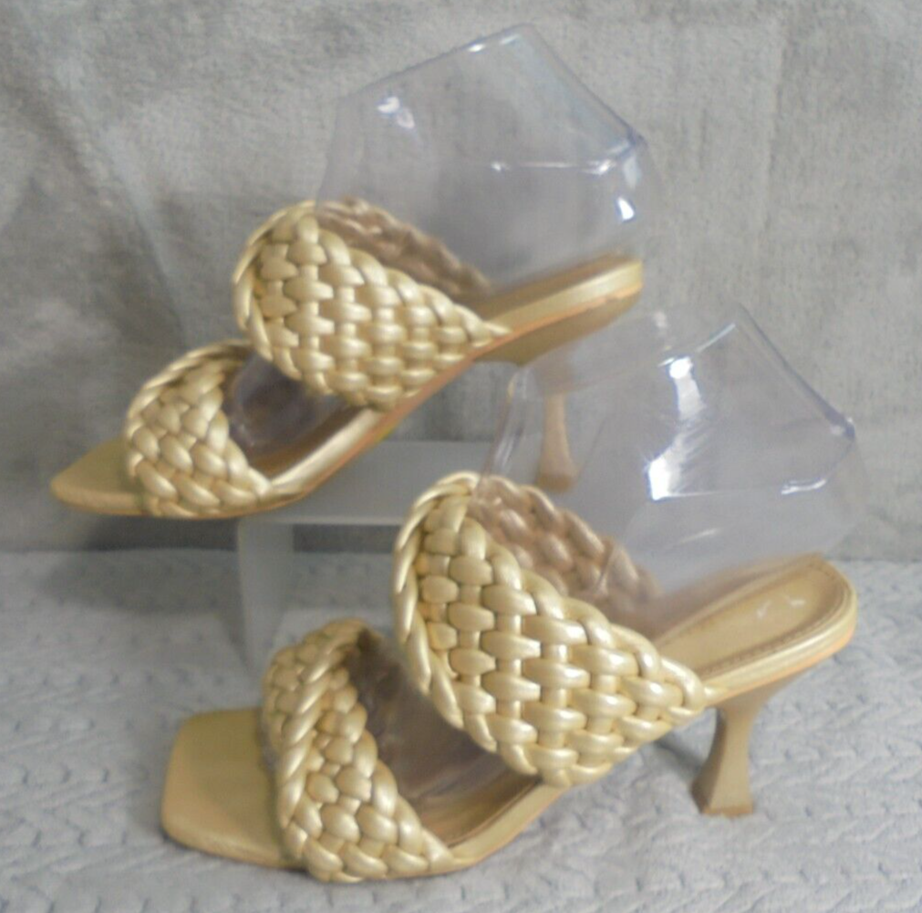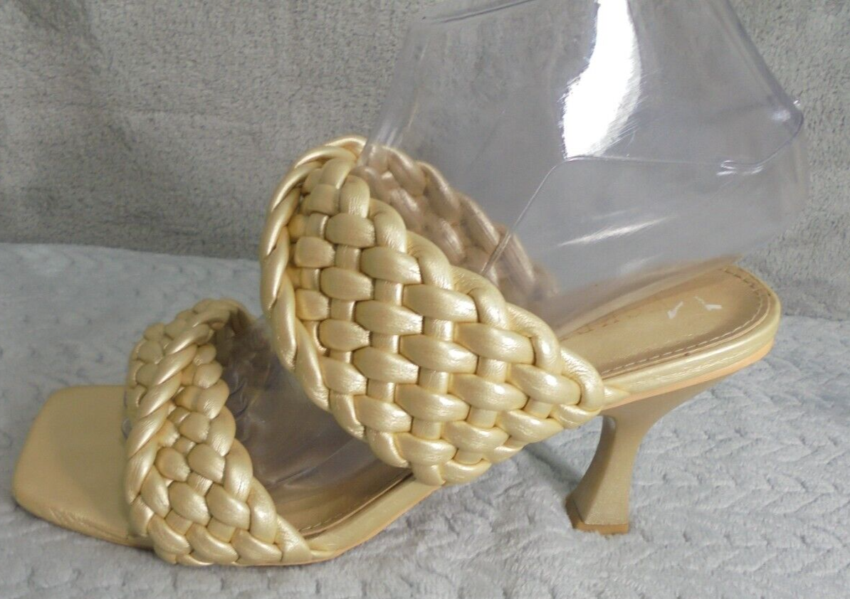 - WSKEISP Women's size 7 Mule Sandals Slip On Heel Braided Shoe Irridescent Beige