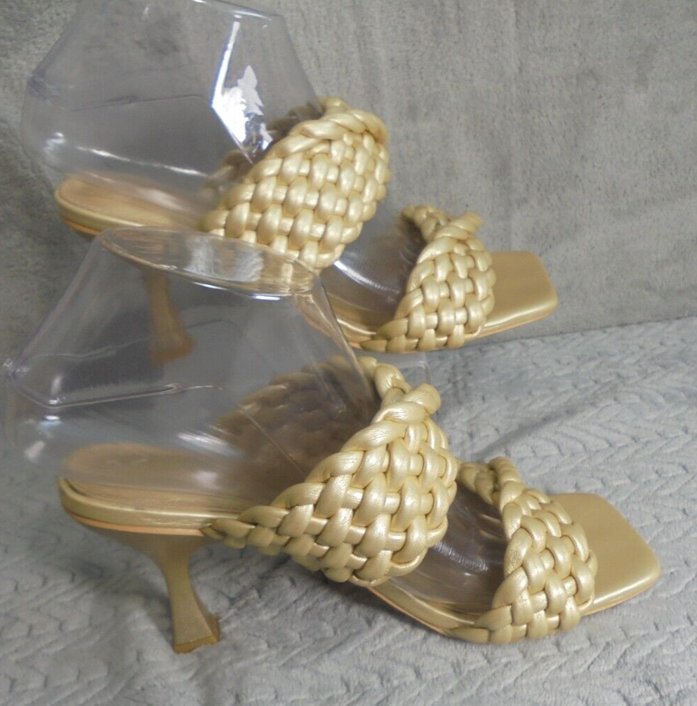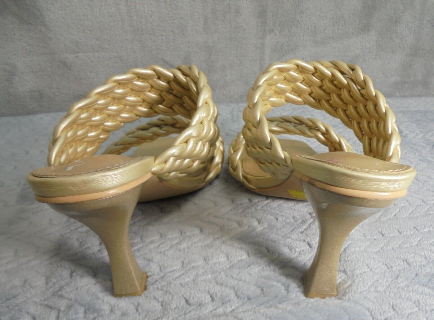 Description: Pretty braided strap mule 3" high heels. Slip. 9.5" length. No size tag but should be size 7.